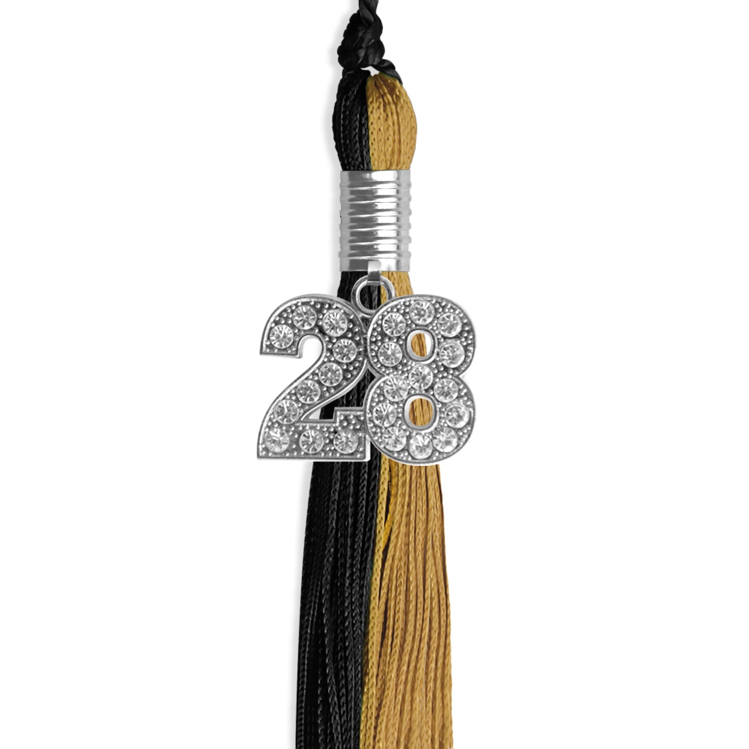 Double Color Tassel with Silver Date Drop (Black/Antique Gold)