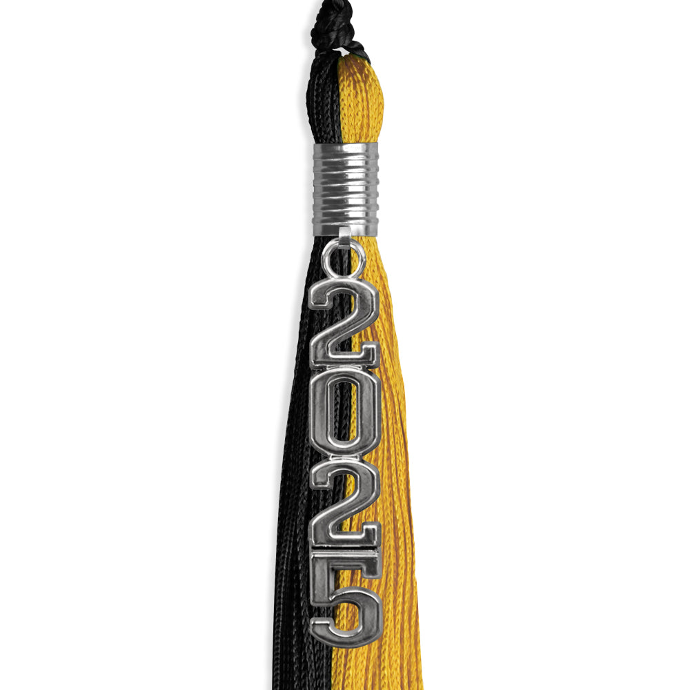 Double Color Tassel with Silver Stacked Date Drop (Black/Bright Gold)