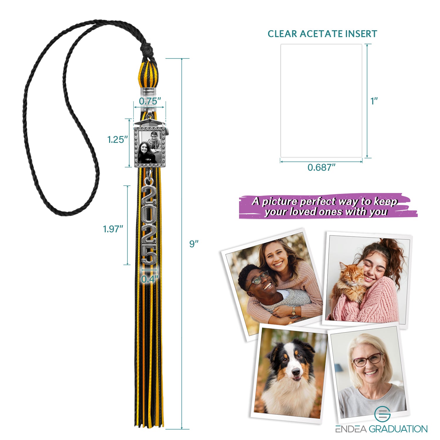 Customizable Photo Charm: Designed to securely hold a photo measuring 1” by 0.7”, offering a personalized touch to your graduation tassel.