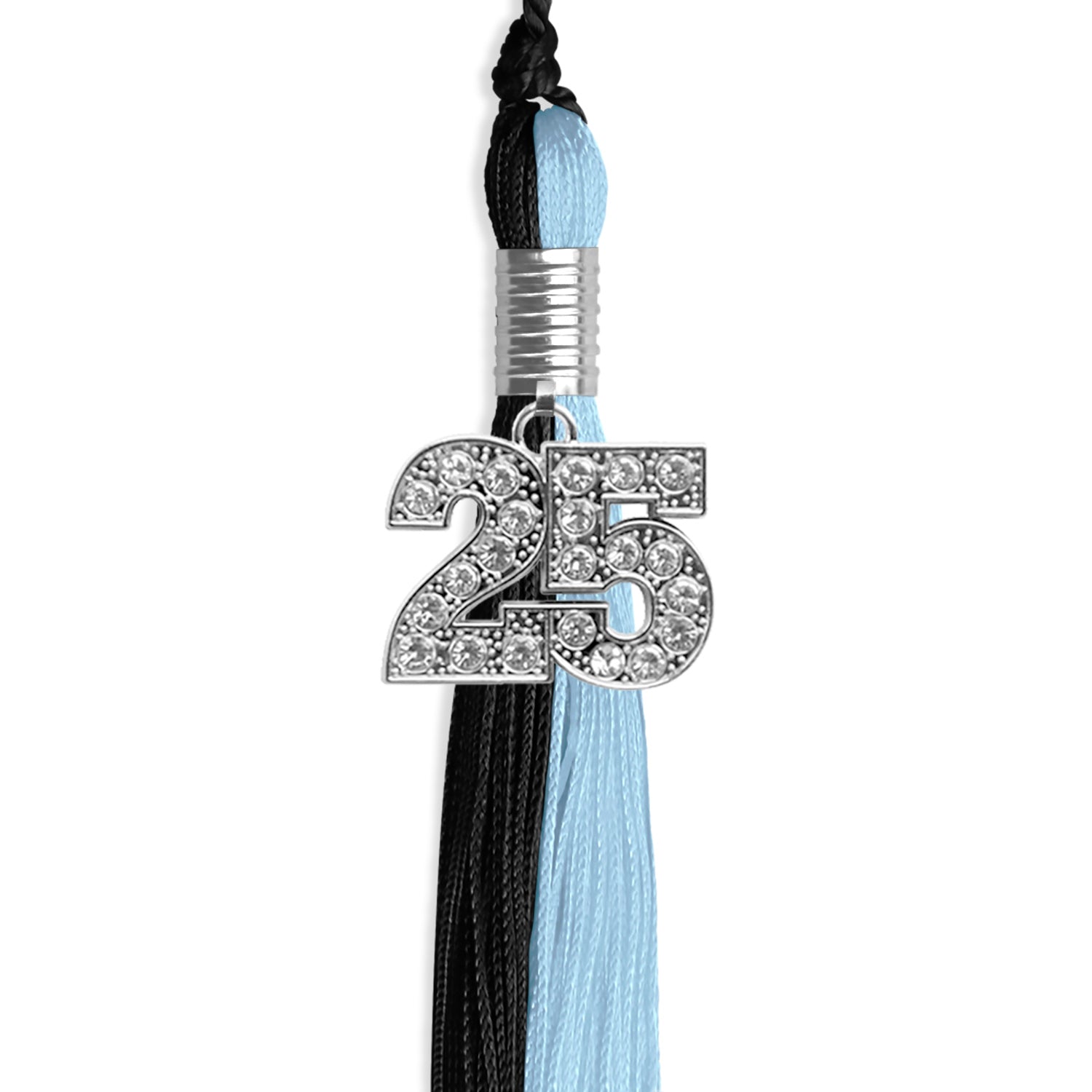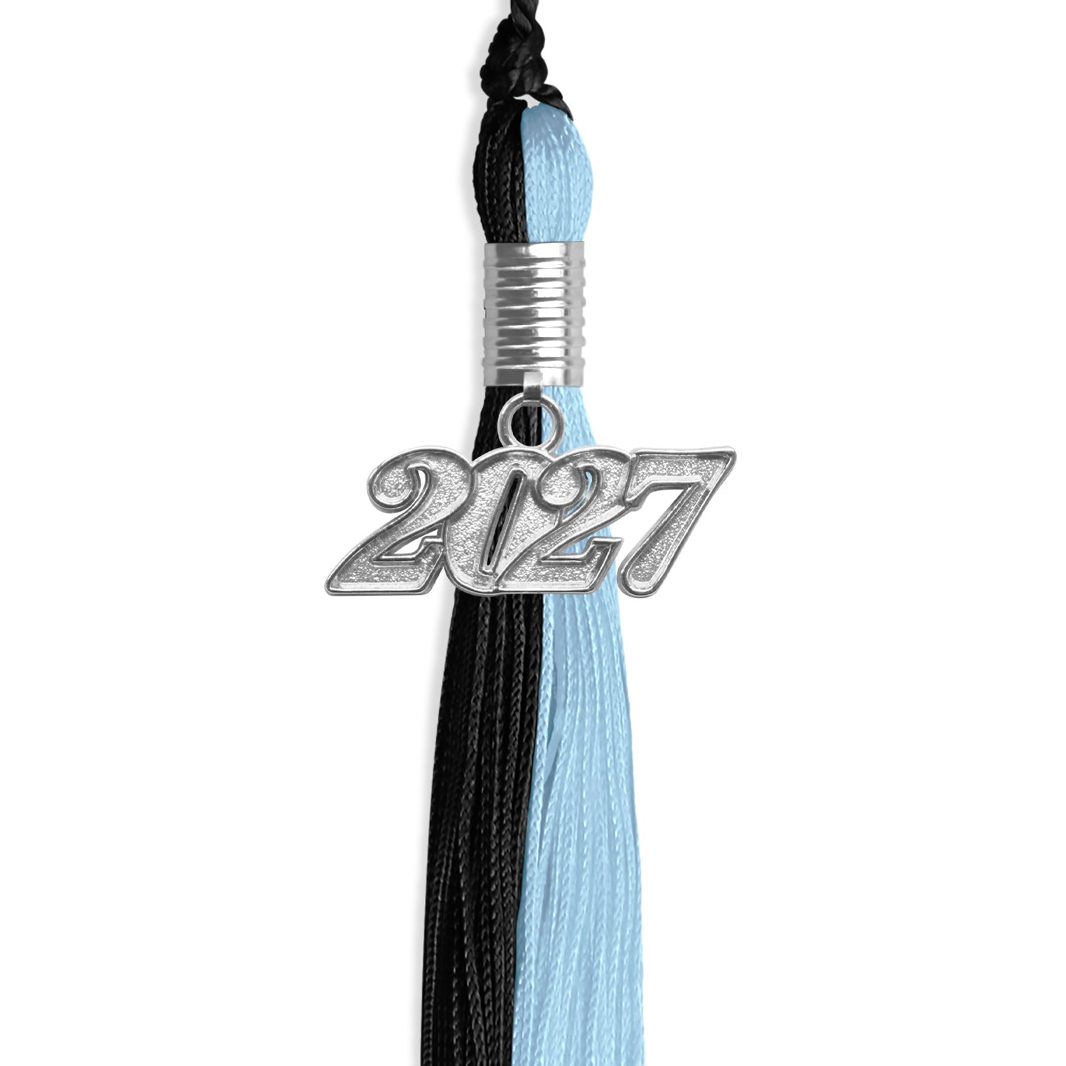 Black/Light Blue Graduation Tassel with Silver Date Drop