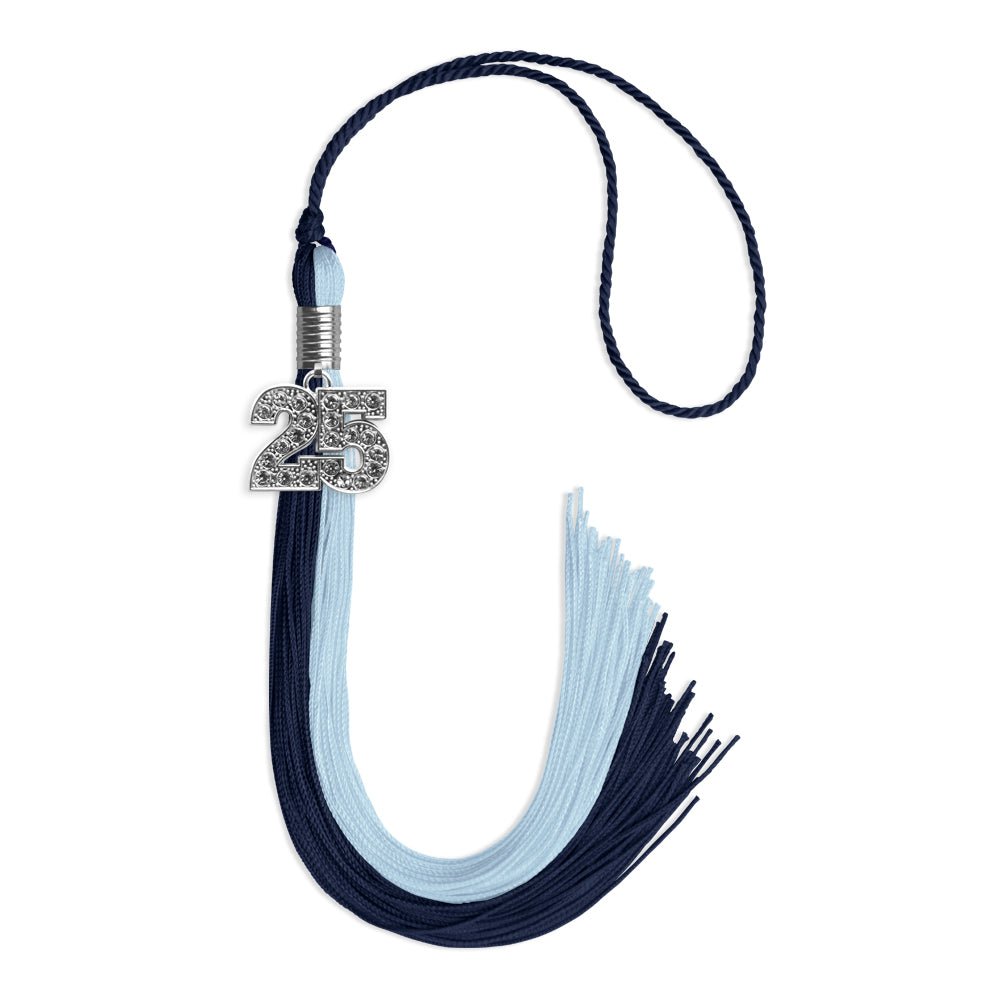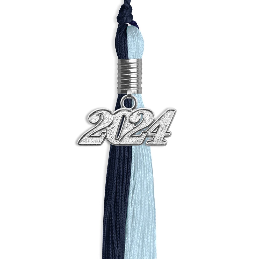 Dark Navy Blue/Light Blue Graduation Tassel with Silver Date Drop