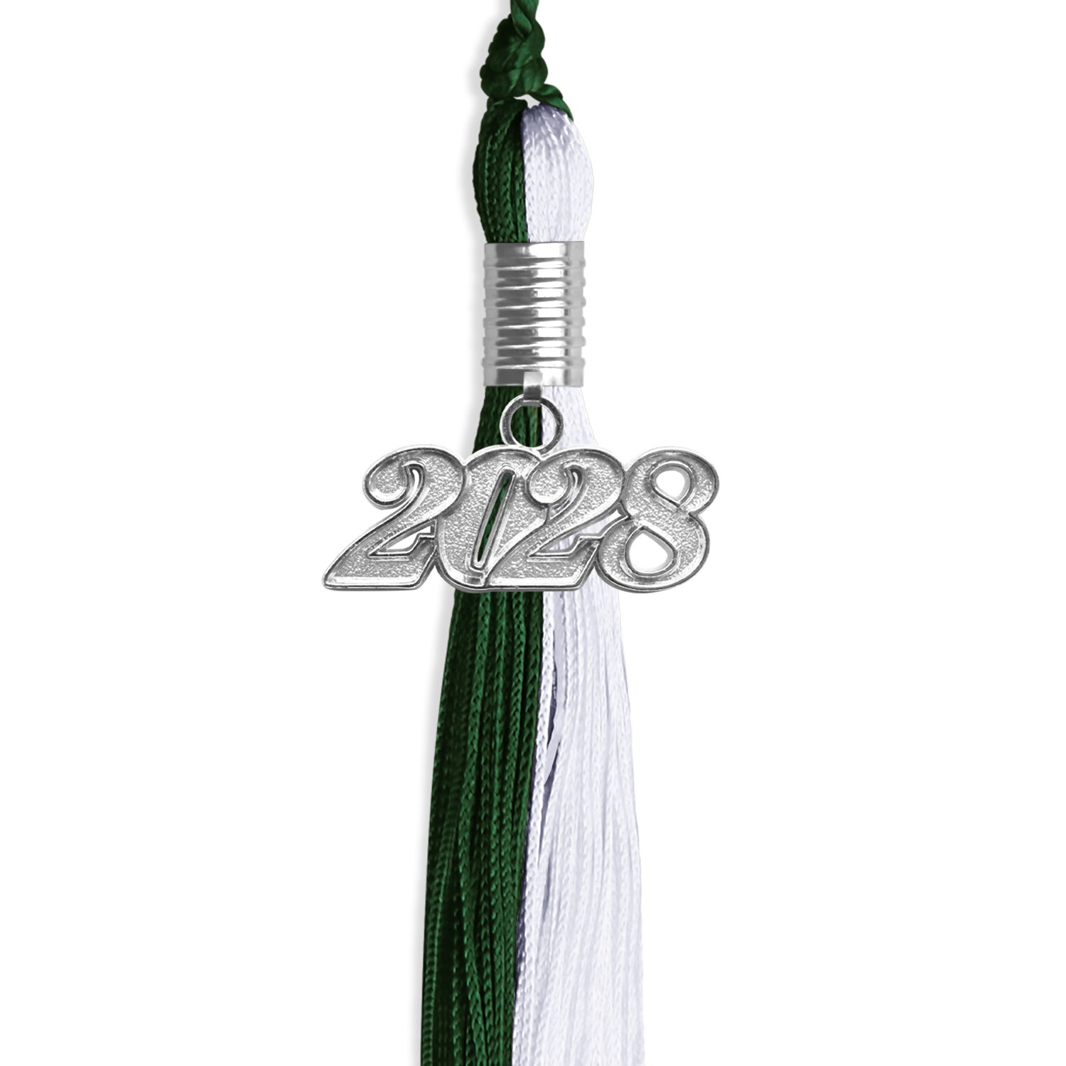 Hunter Green/White Graduation Tassel with Silver Date Drop