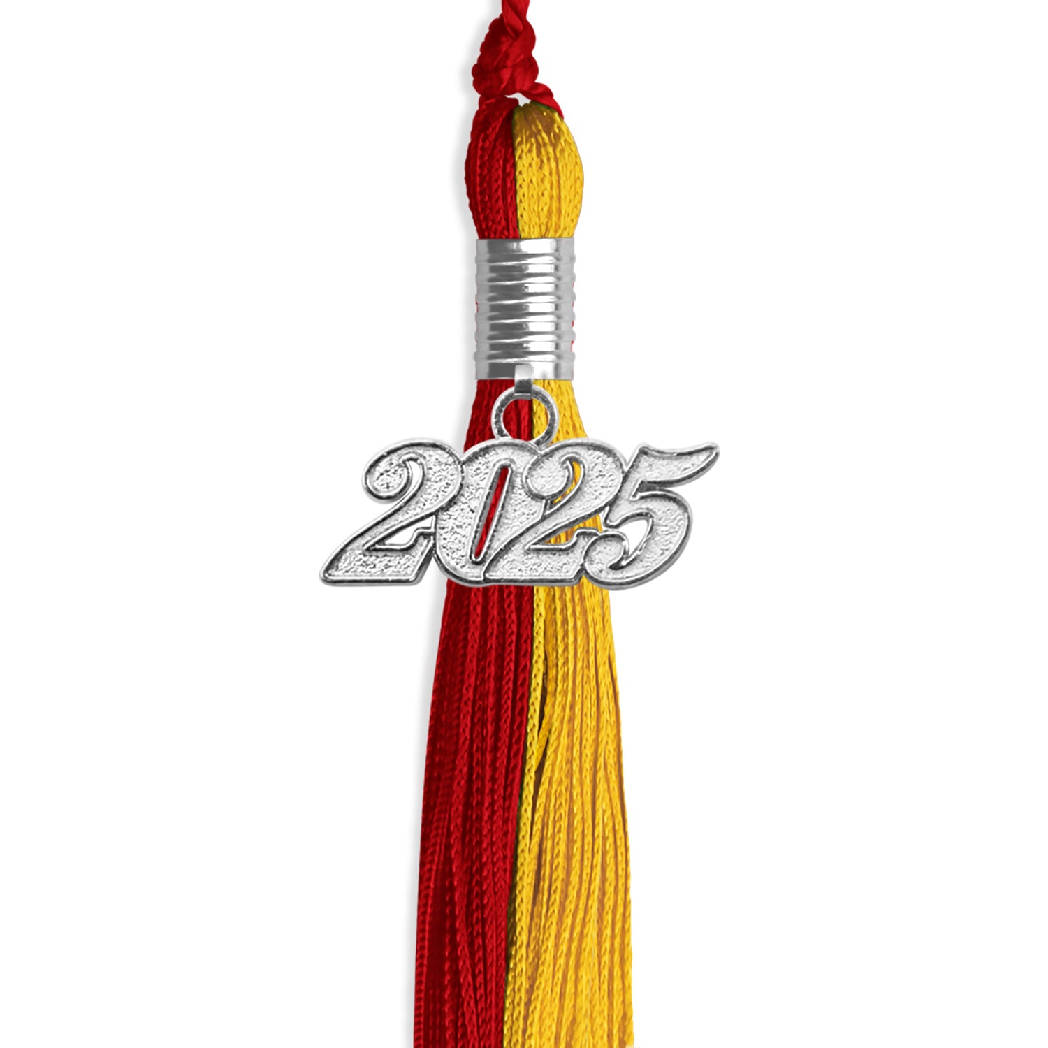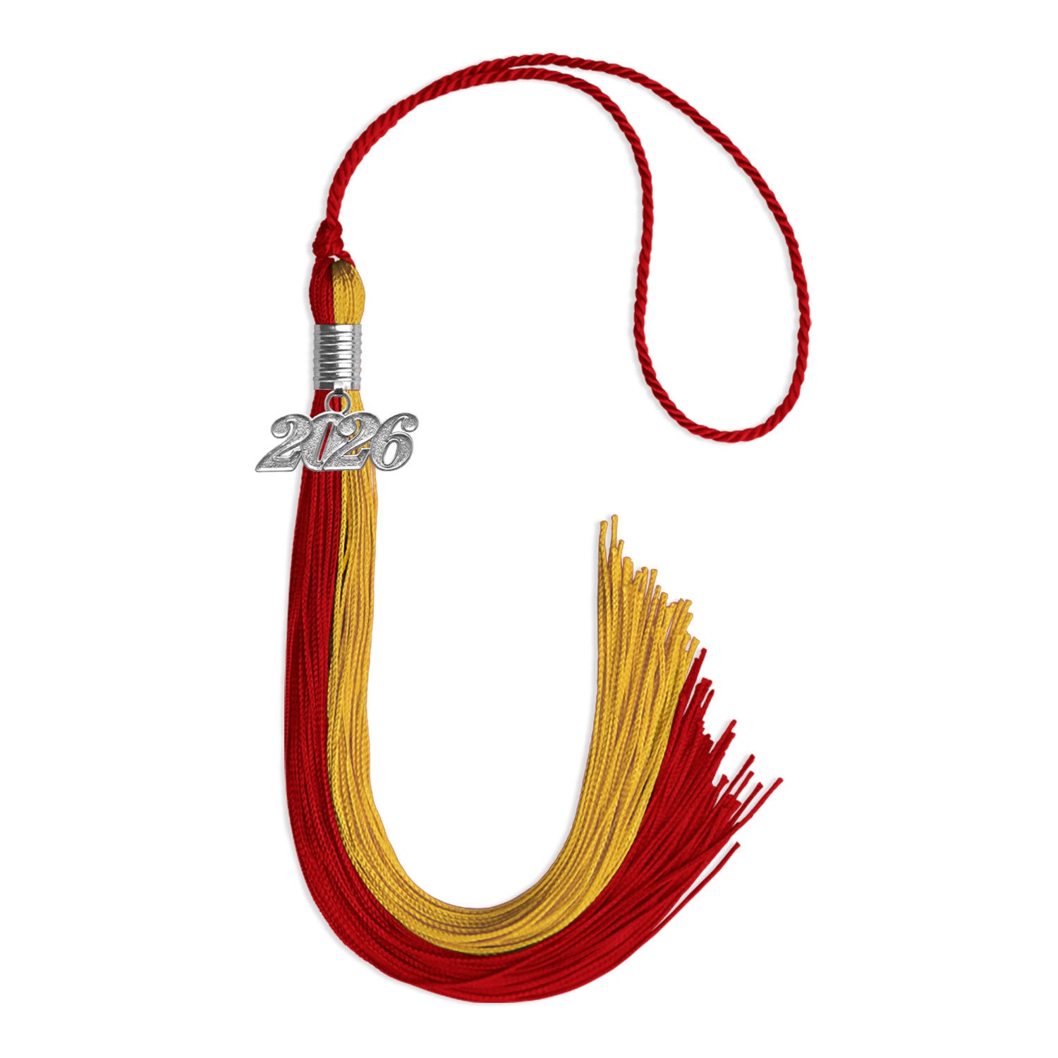 The Double Color Tassel with Silver Date Drop is a refined and elegant accessory designed to elevate your graduation ensemble. Featuring a distinguished silver-colored year drop, this tassel adds a personalized touch that symbolizes the graduate’s achievement. With a 9-inch length and a 6.5" hang loop, it is designed to fit most caps, ensuring a seamless and secure fit. The dual-color design provides a sophisticated and stylish contrast, making it an ideal choice for graduates seeking a distinctive look. Beyond its role in completing the graduation attire, this tassel serves as a cherished keepsake, commemorating the dedication and hard work that led to this significant academic milestone.
