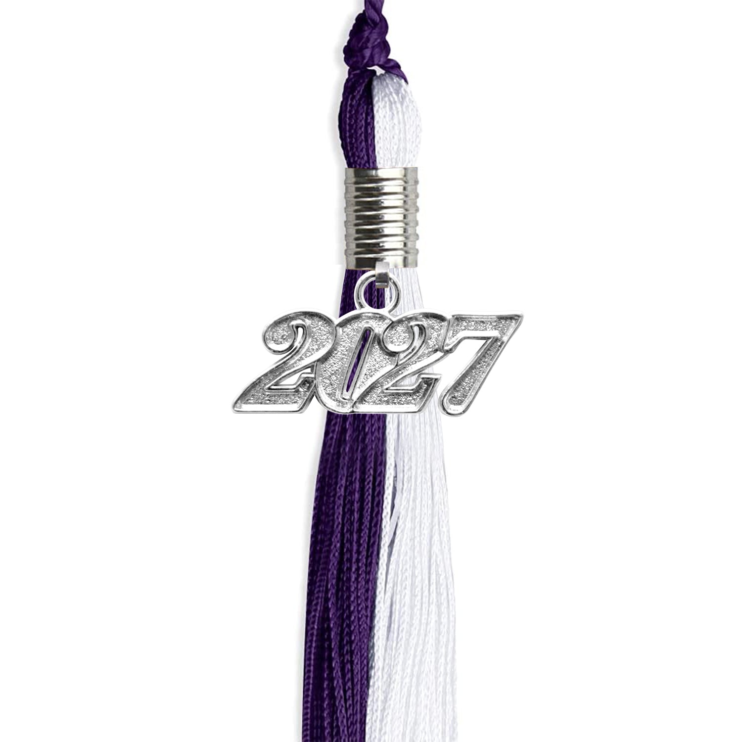 The Double Color Tassel with Silver Date Drop is a refined and elegant accessory designed to elevate your graduation ensemble. Featuring a distinguished silver-colored year drop, this tassel adds a personalized touch that symbolizes the graduate’s achievement. With a 9-inch length and a 6.5" hang loop, it is designed to fit most caps, ensuring a seamless and secure fit. The dual-color design provides a sophisticated and stylish contrast, making it an ideal choice for graduates seeking a distinctive look. Beyond its role in completing the graduation attire, this tassel serves as a cherished keepsake, commemorating the dedication and hard work that led to this significant academic milestone.