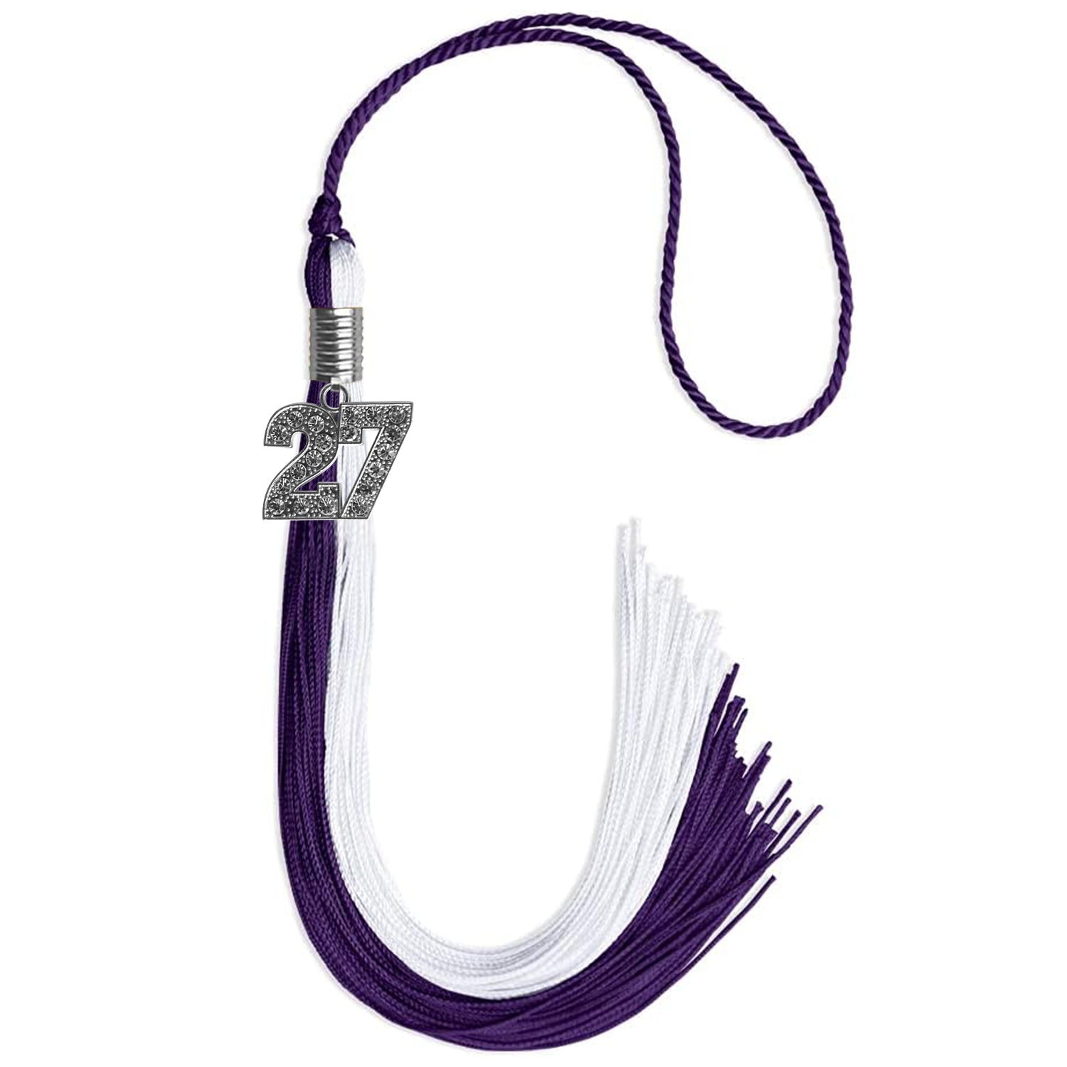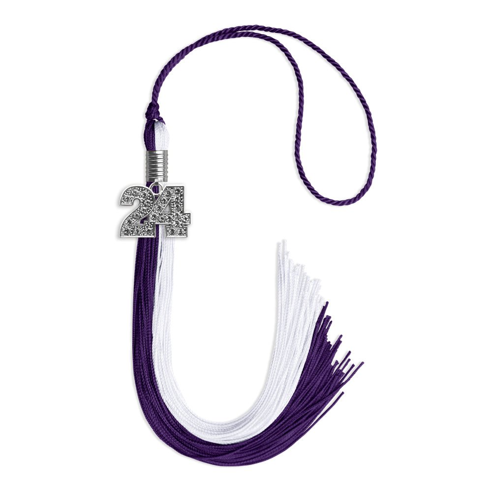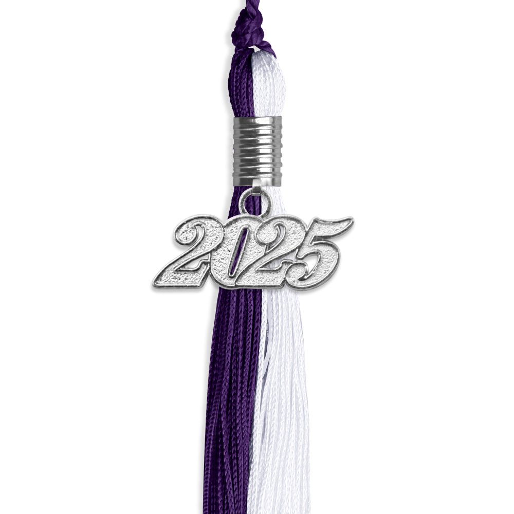 Double Color Tassel with Silver Date Drop (Purple/White)