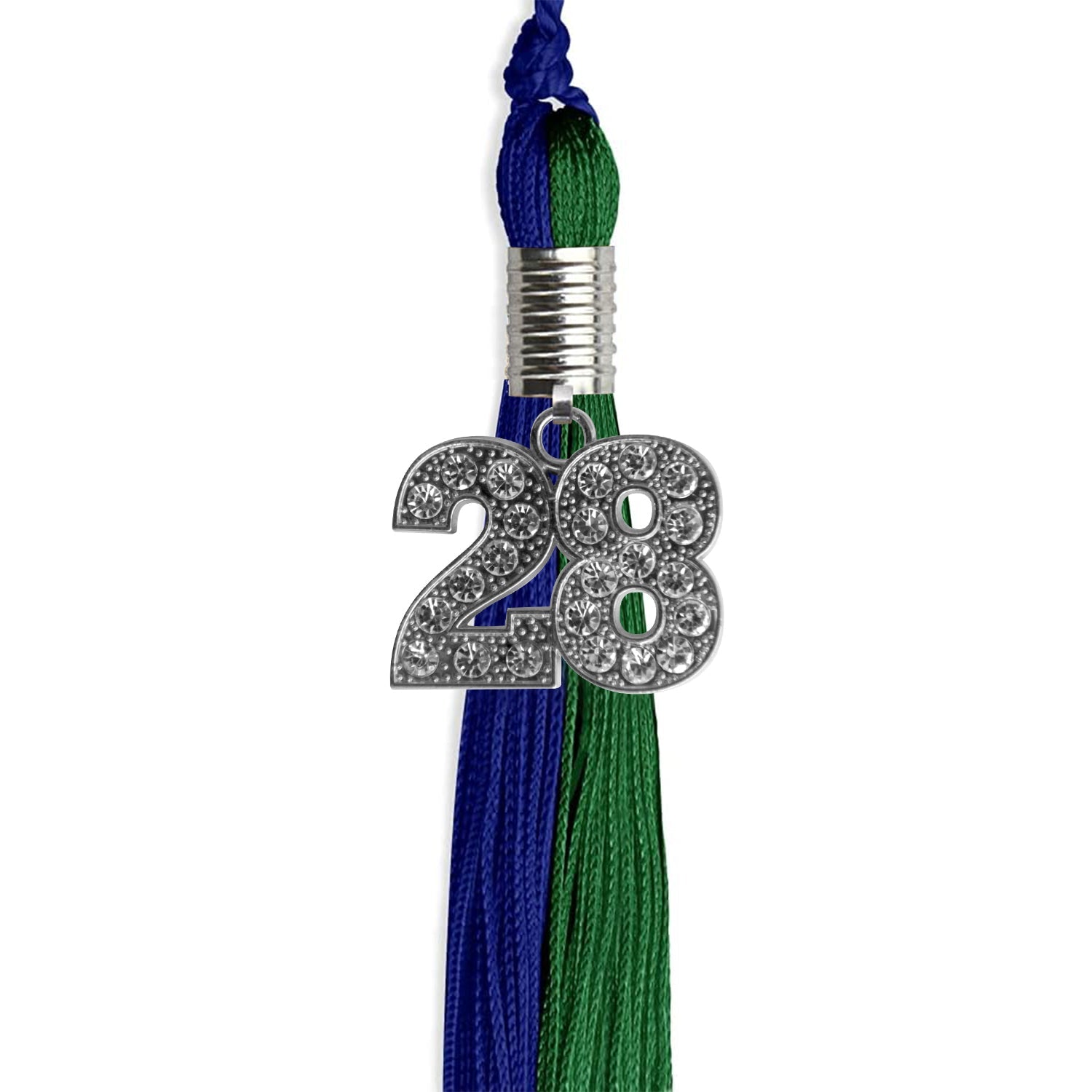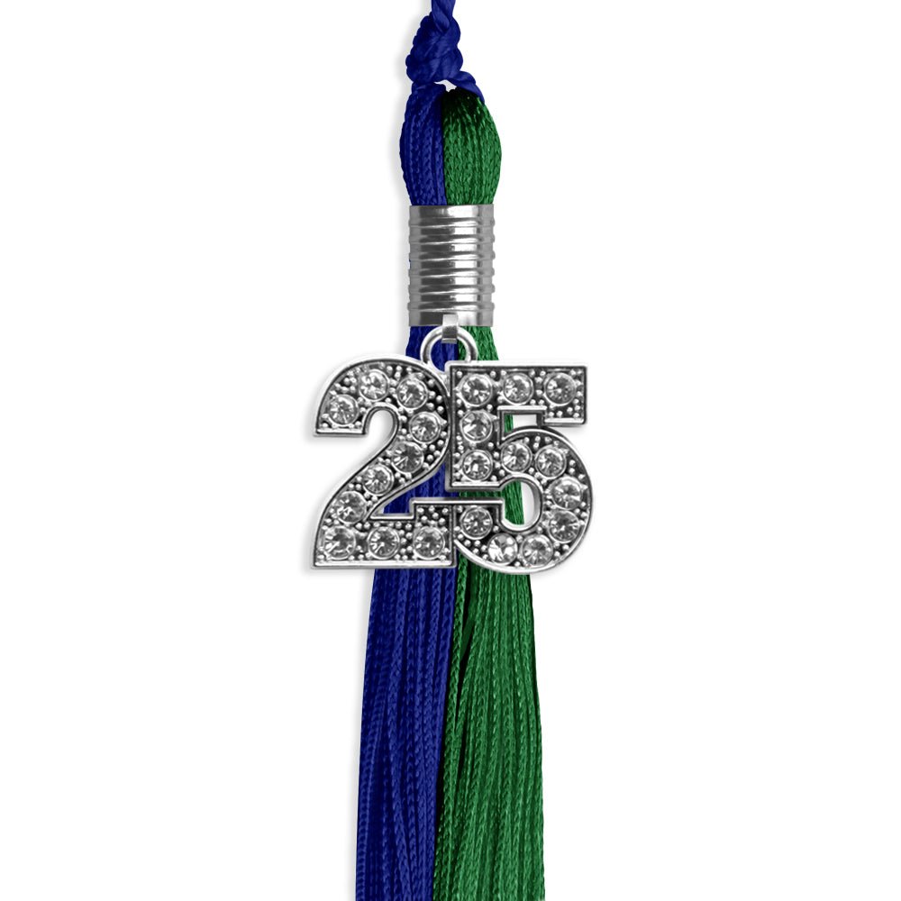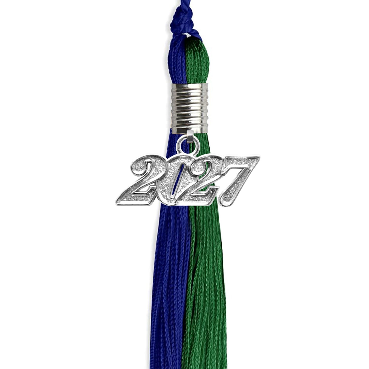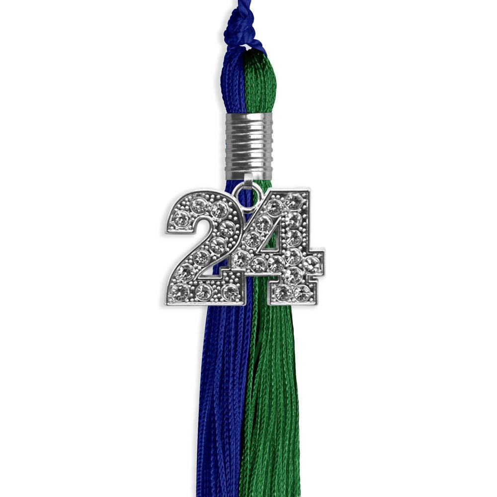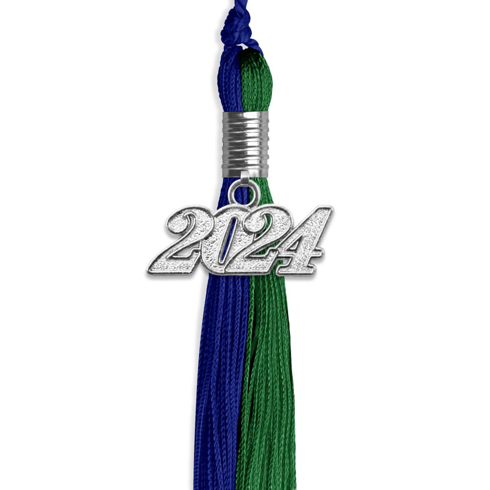 Royal Blue/Green Graduation Tassel with Silver Date Drop