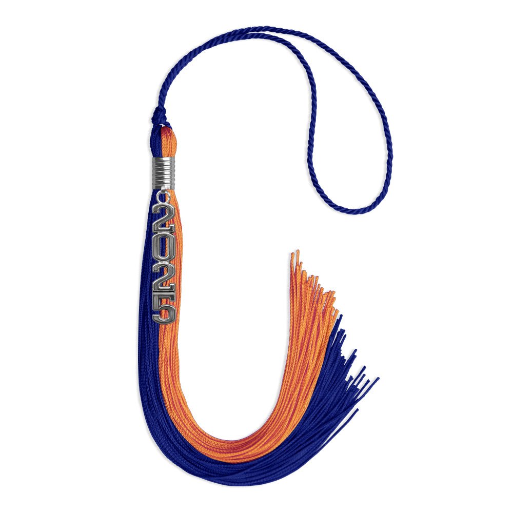 Double Color Tassel with Silver Stacked Date Drop (Royal Blue/Orange)