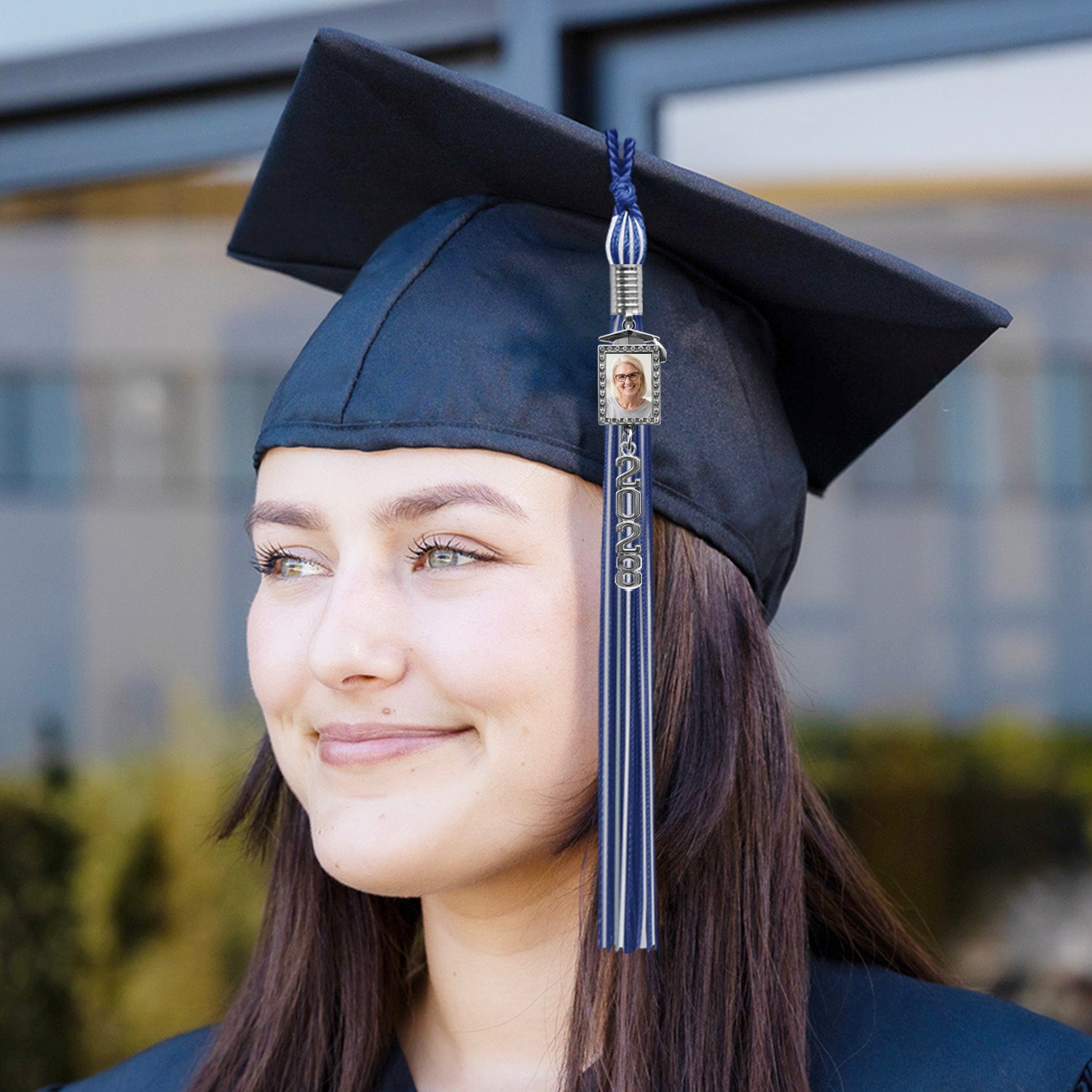 Customizable Photo Charm: Designed to securely hold a photo measuring 1” by 0.7”, offering a personalized touch to your graduation tassel.