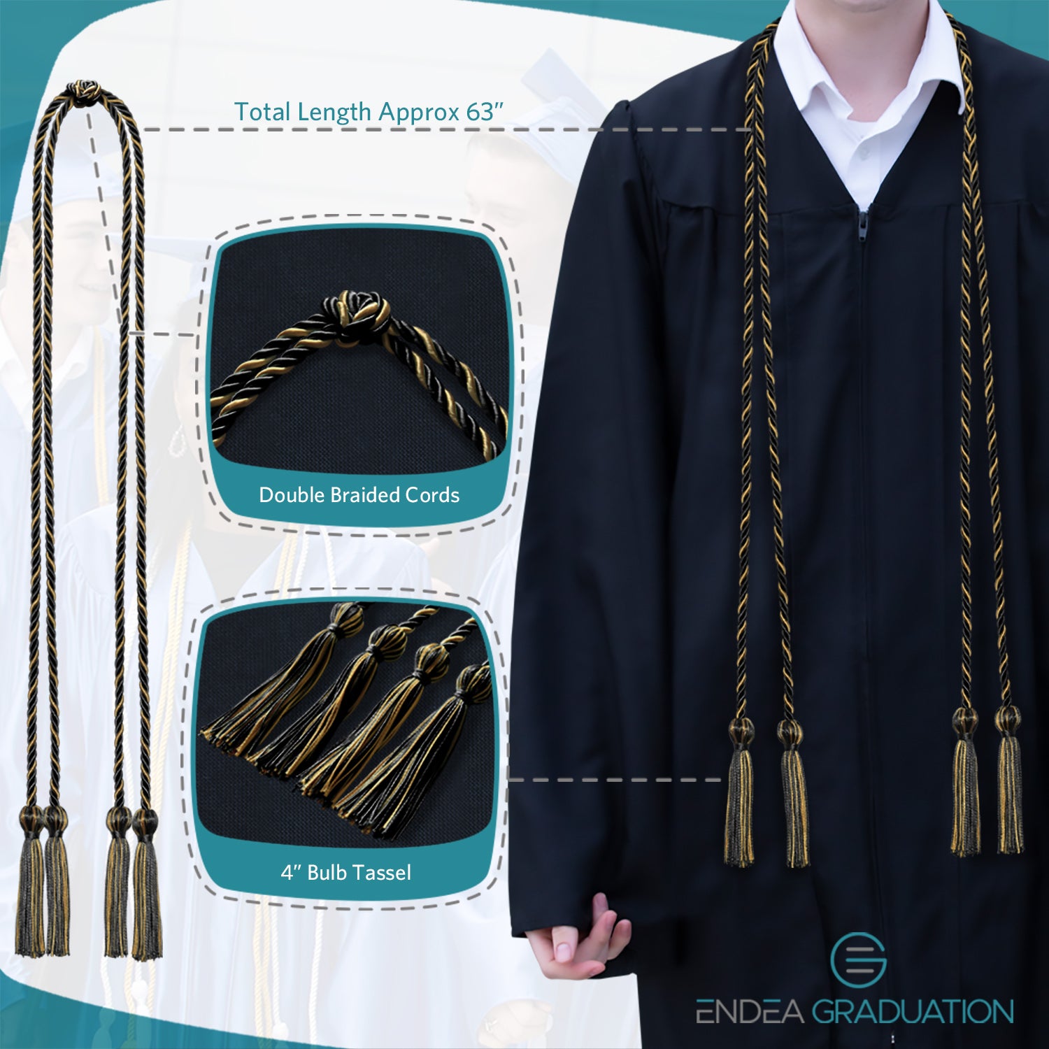 Enhance your graduation attire with a Double Honor Cord Two Colors Intertwined a distinguished symbol of academic achievement. Crafted from high-quality polyester, this cord measures 62 inches in length and features 4-inch tassels on each end for a polished and professional appearance. Available in multiple colors, it serves as a meaningful recognition of excellence in various academic and honorary programs.