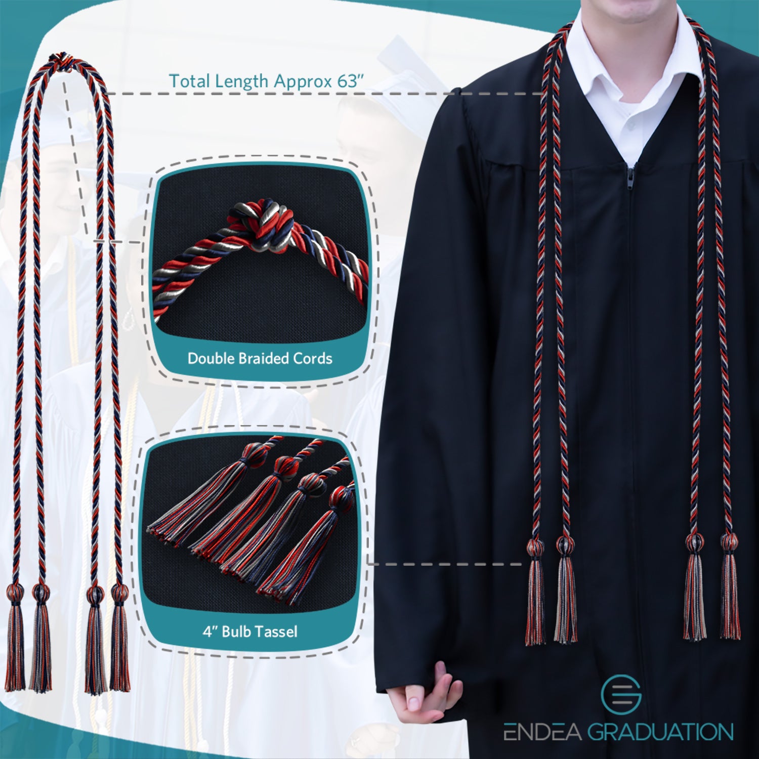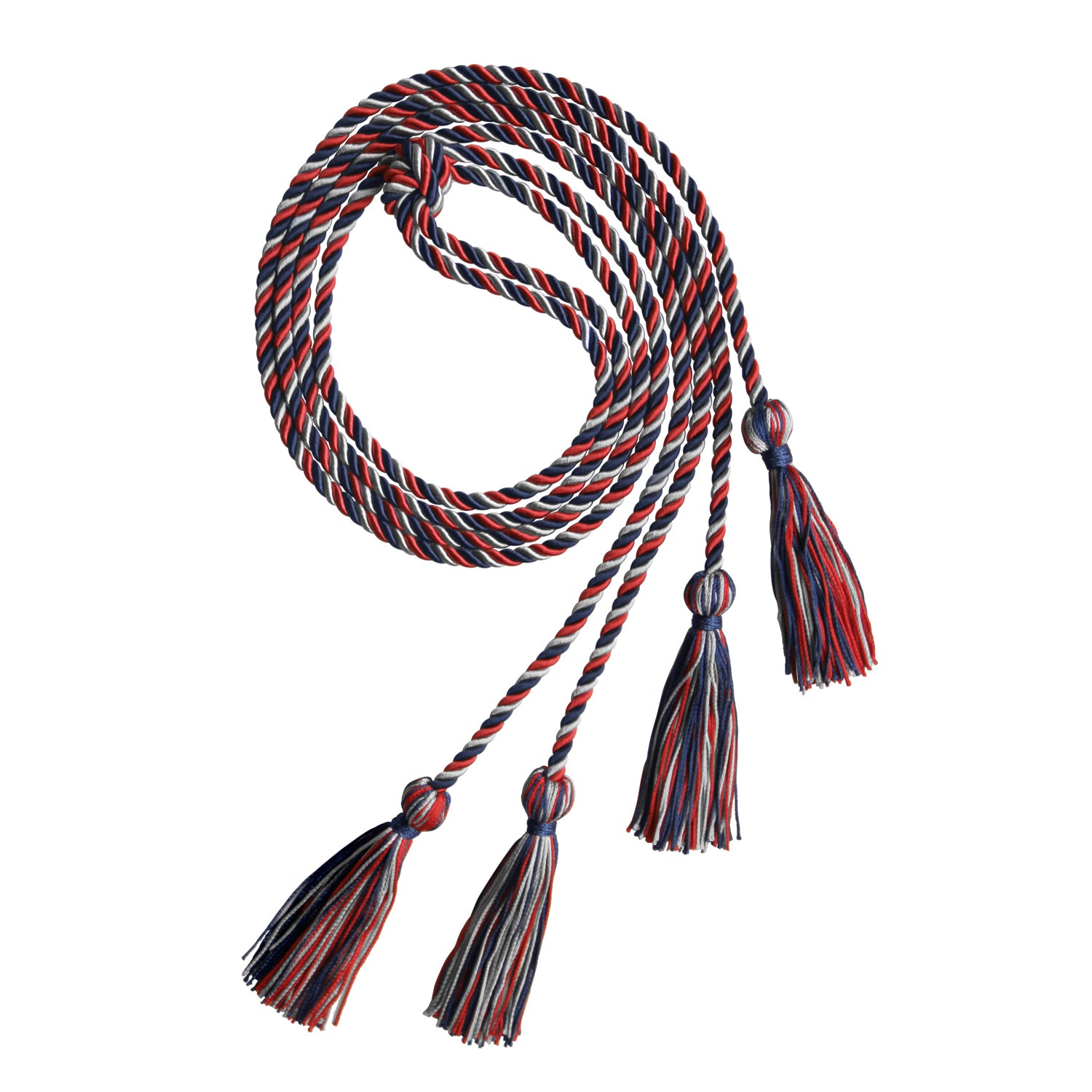 Double Graduation Honor Cord Navy Blue/Red/Silver
