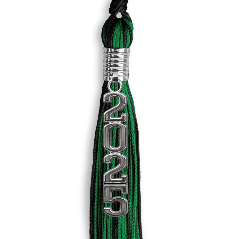 Black/Green Mixed Color Graduation Tassel with Stacked Silver Date Drop