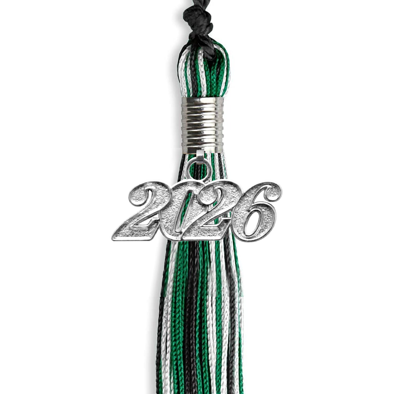Black/Green/White Mixed Color Graduation Tassel with Silver Date Drop