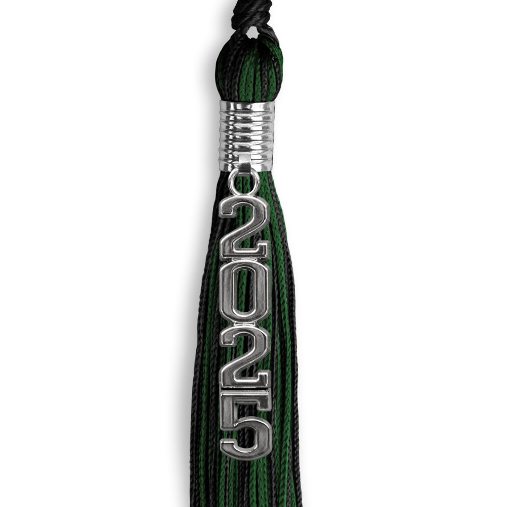 Black/Hunter Green Mixed Color Graduation Tassel with Stacked Silver Date Drop