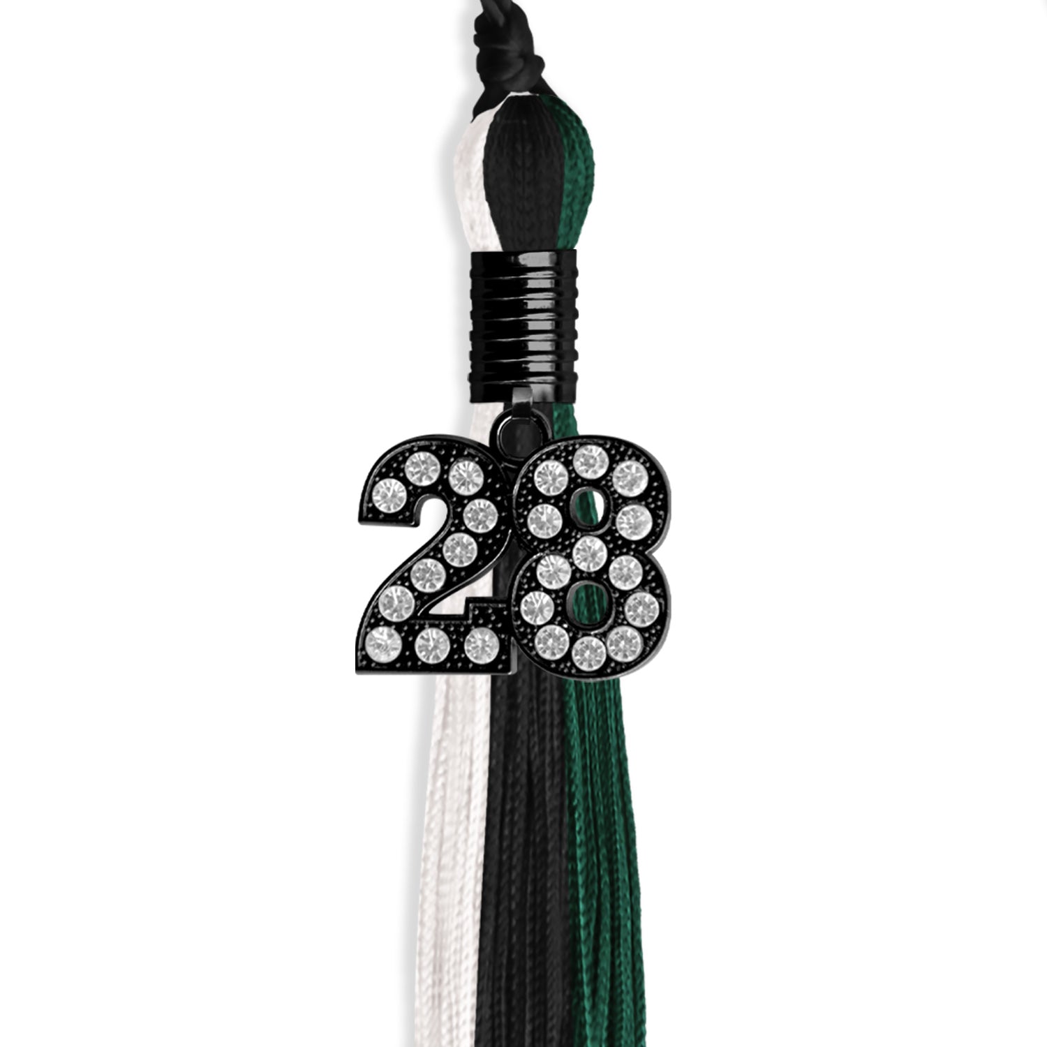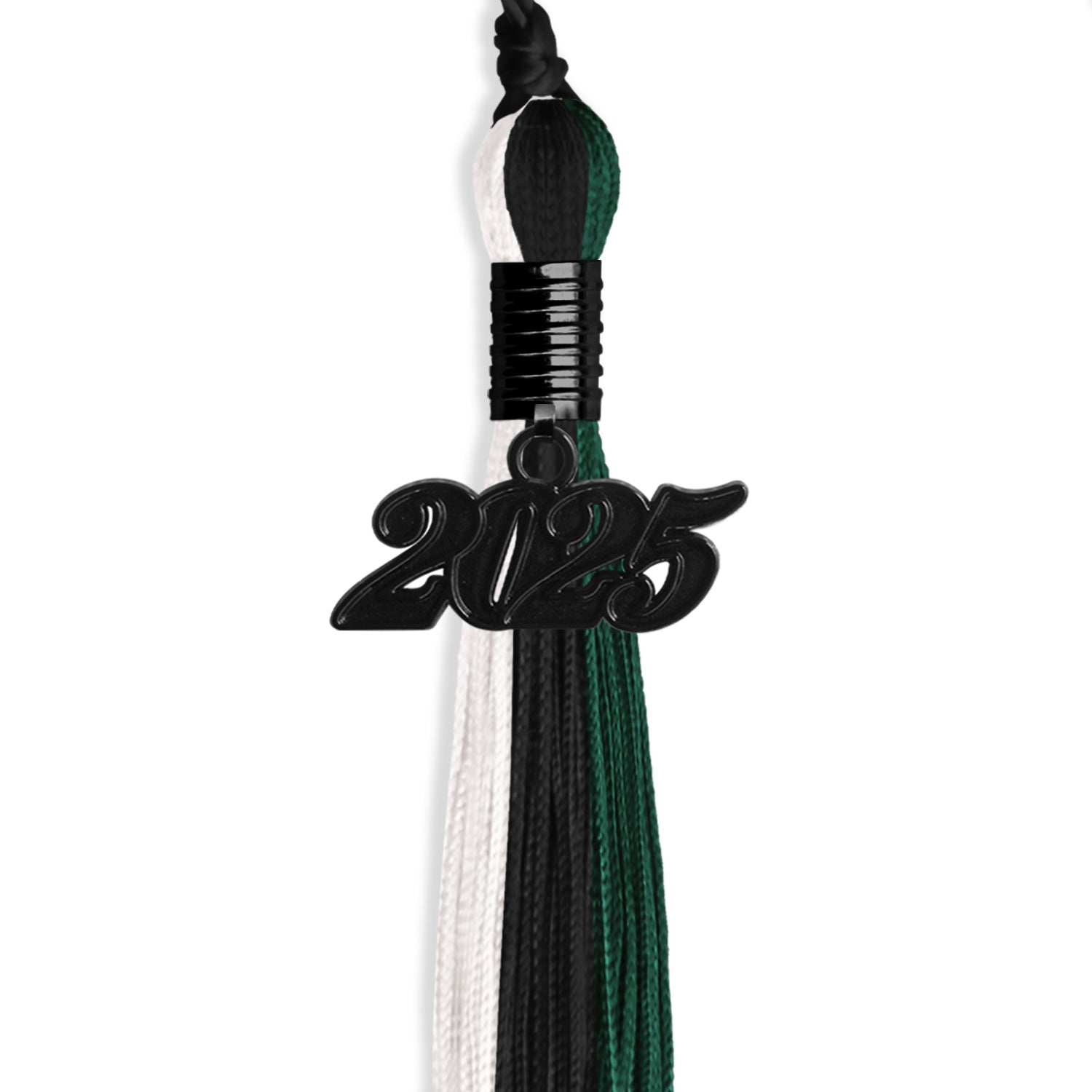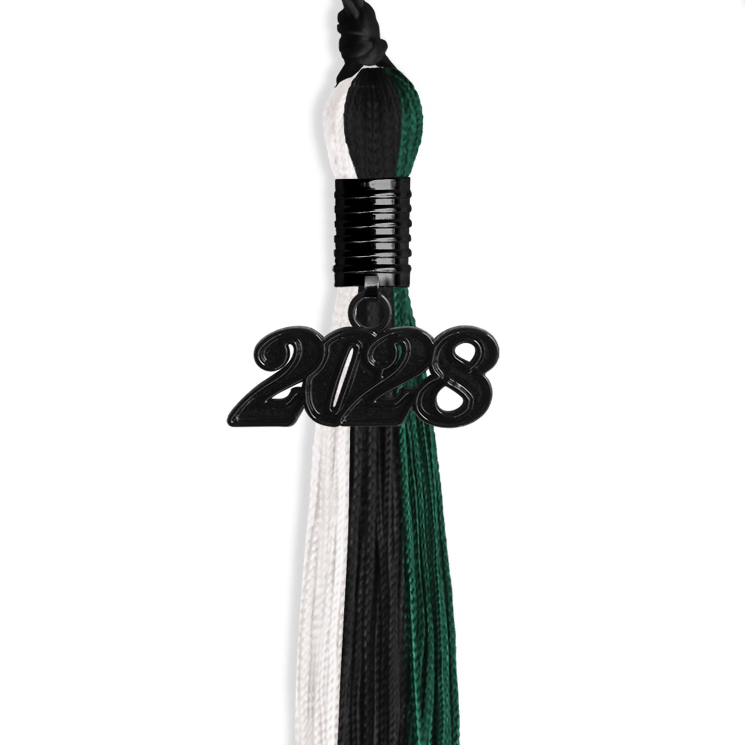 Black/Hunter Green/White Graduation Tassel with Black Date Drop