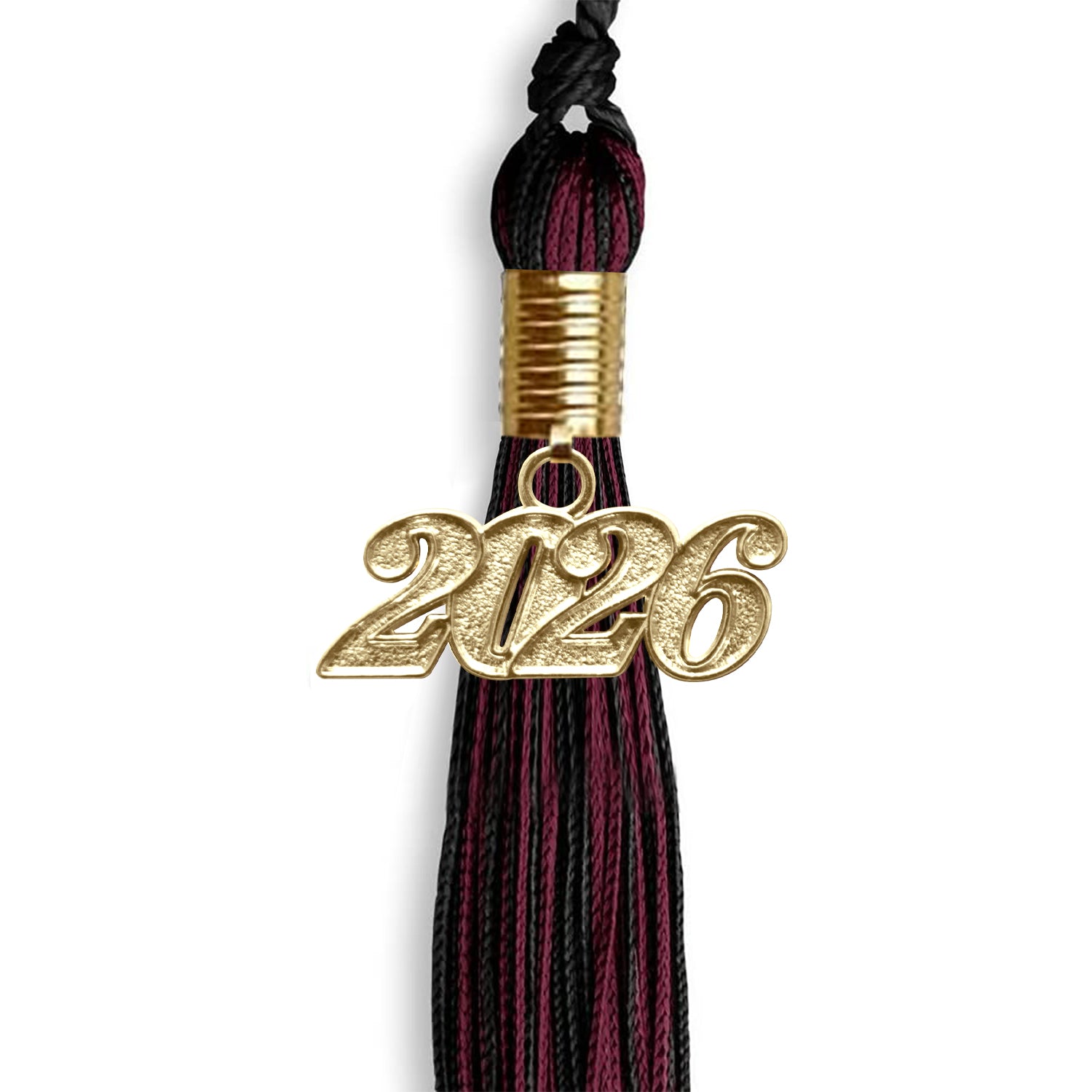 Black/Maroon Mixed Color Graduation Tassel with Gold Date Drop
