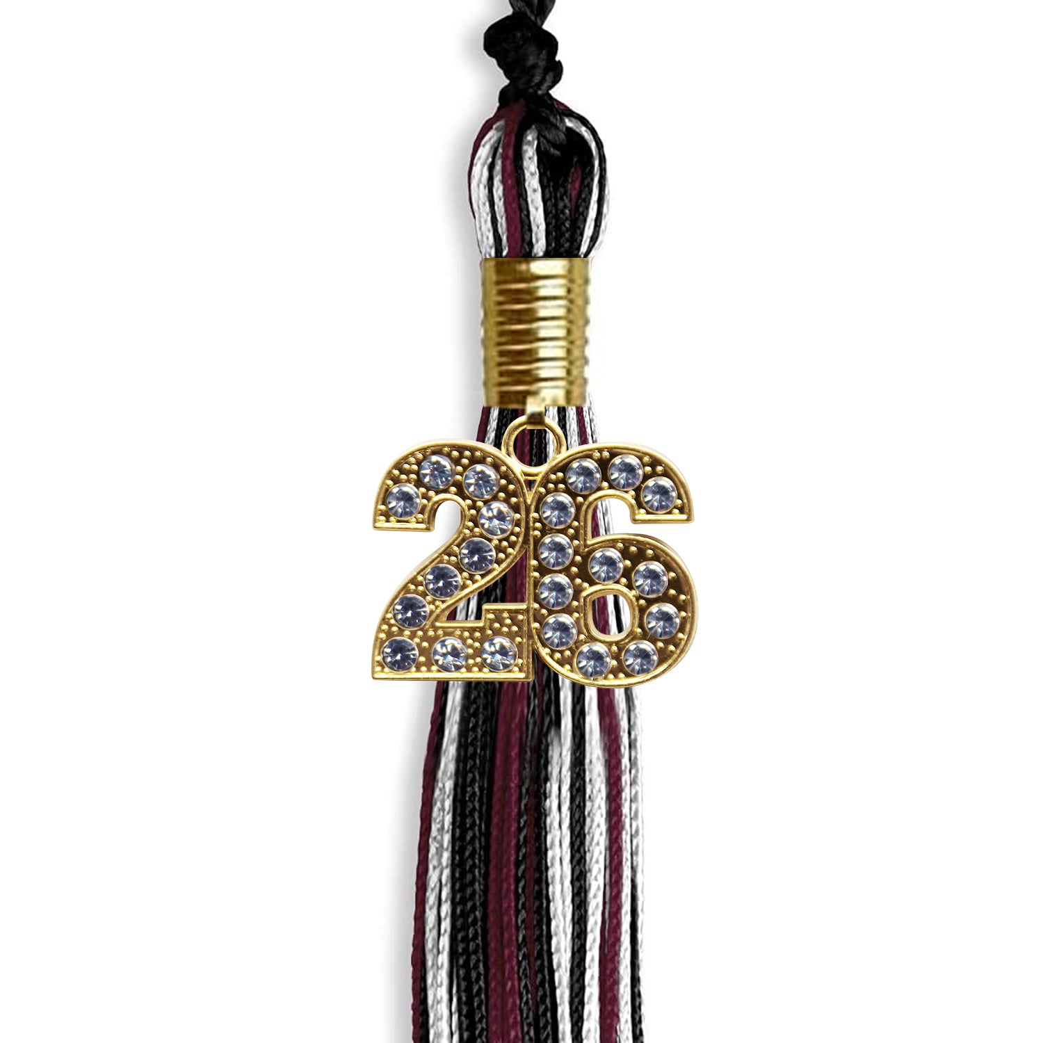 Black/Maroon/White Mixed Color Graduation Tassel with Gold Date Drop