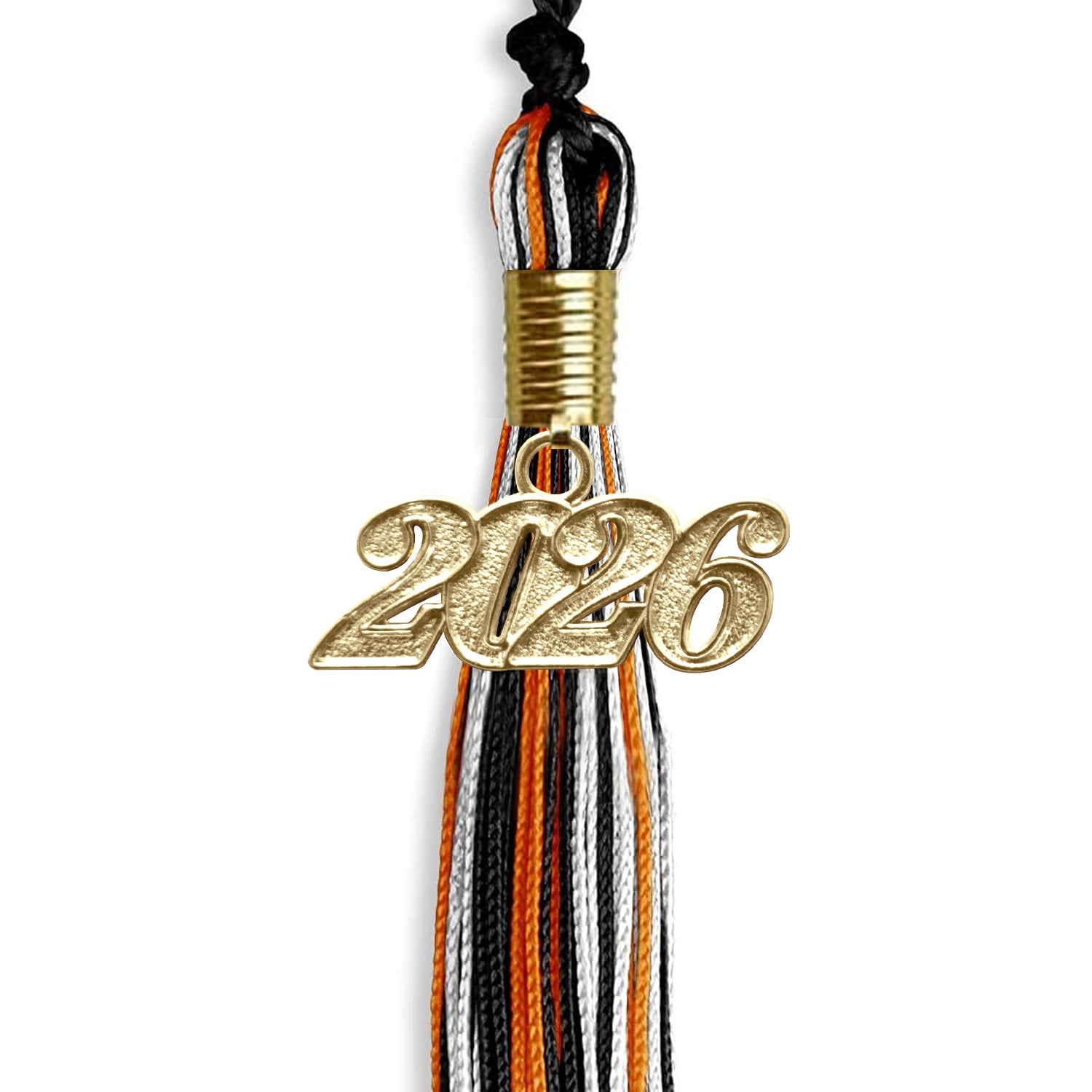 Black/Orange/White Mixed Color Graduation Tassel with Gold Date Drop