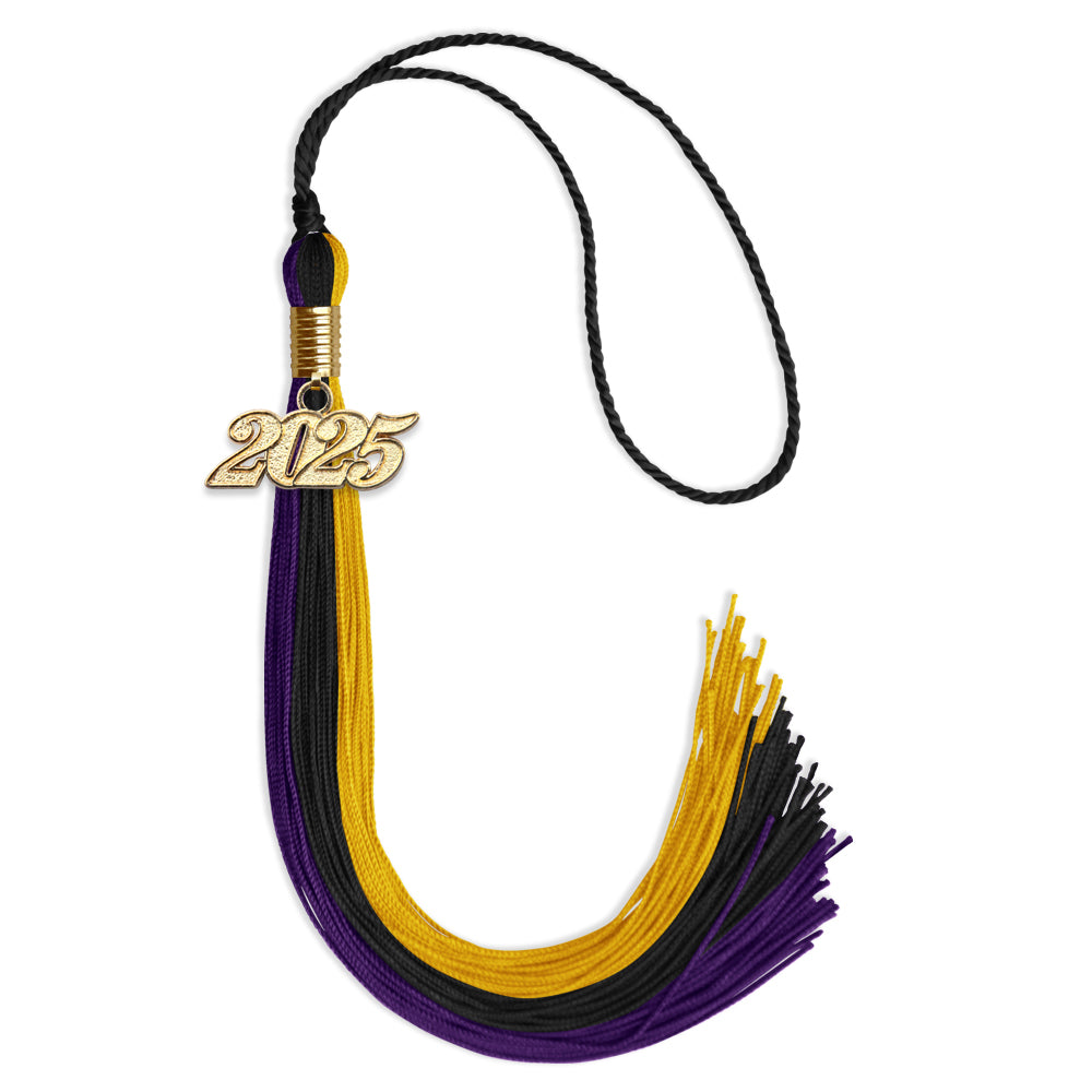 Triple Color Tassel with Gold Date Drop (Black/Purple/Gold)