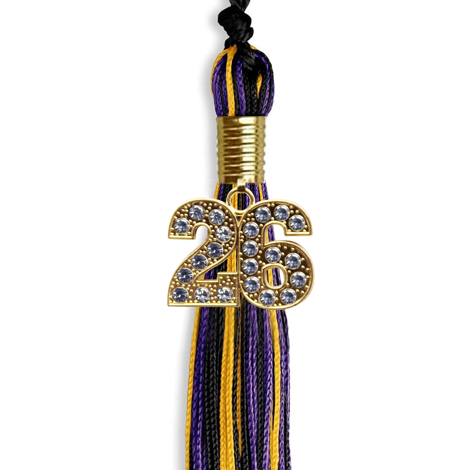 Black/Purple/Gold Mixed Color Graduation Tassel with Gold Date Drop