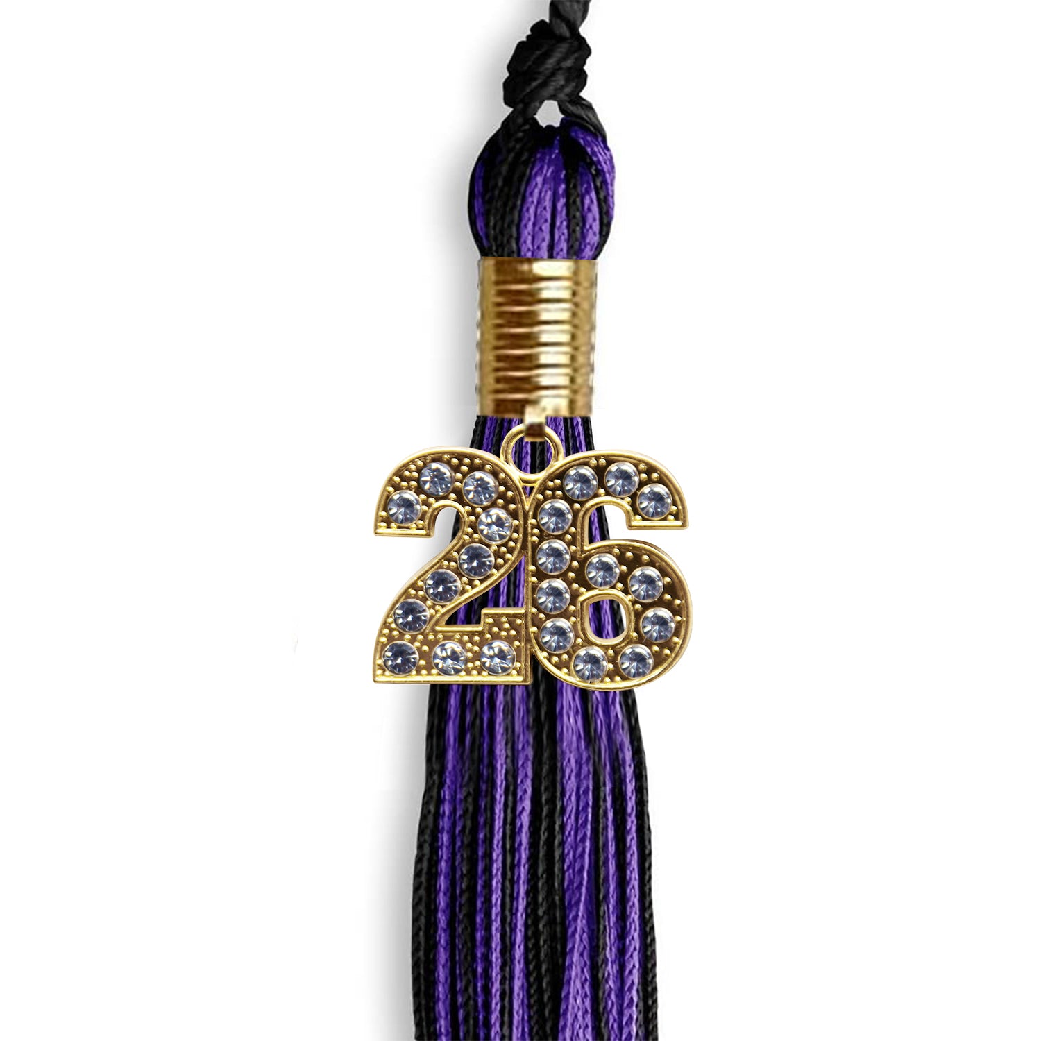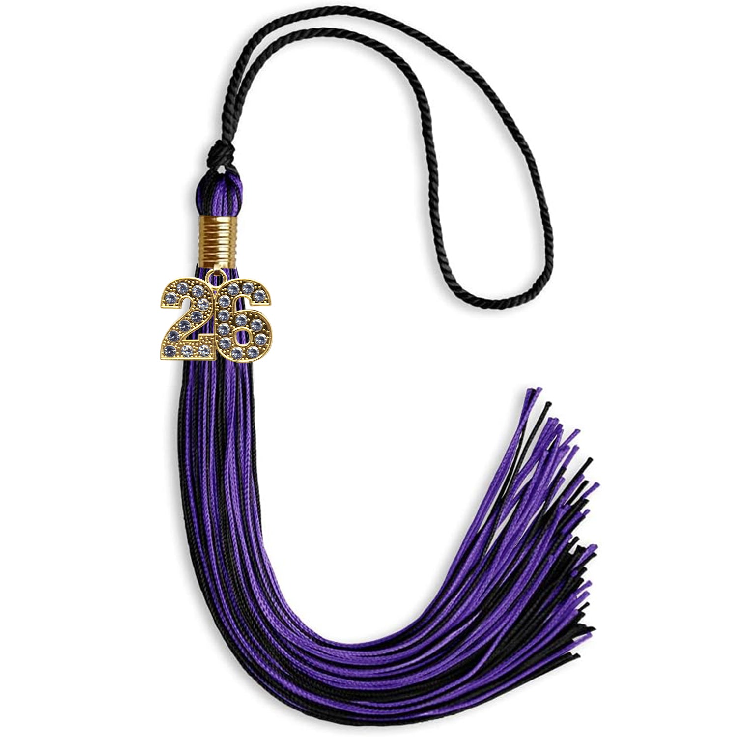 Mixed Double Color Tassel with Gold Date Drop (Black/Purple)