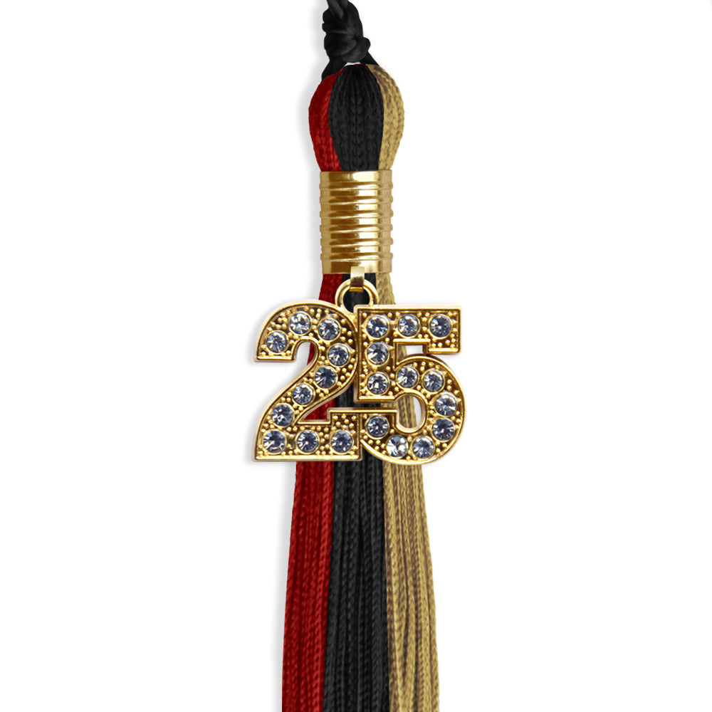 Black/Red/Antique Gold Graduation Tassel with Gold Date Drop