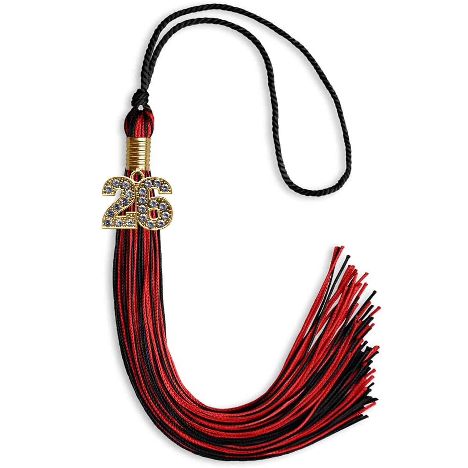 Black/Red Mixed Color Graduation Tassel with Gold Date Drop