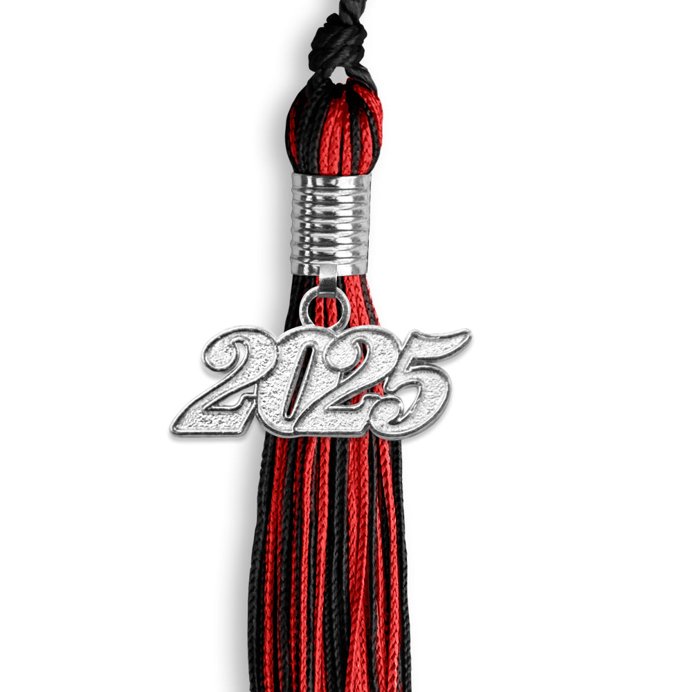 Black/Red Mixed Color Graduation Tassel with Silver Date Drop