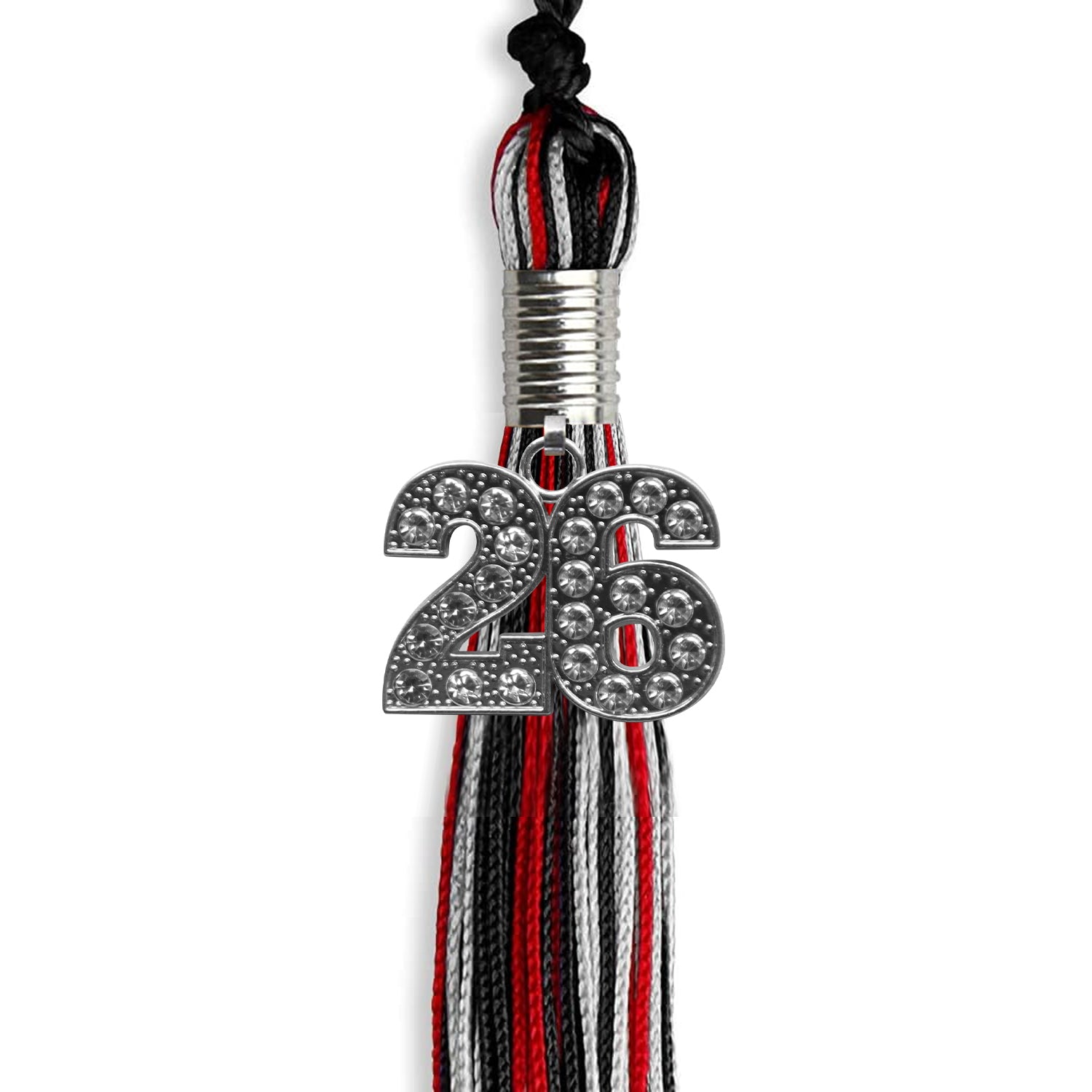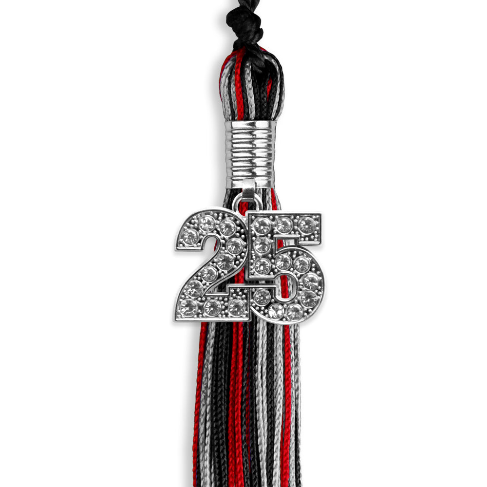 Black/Red/Silver Mixed Color Graduation Tassel with Silver Date Drop