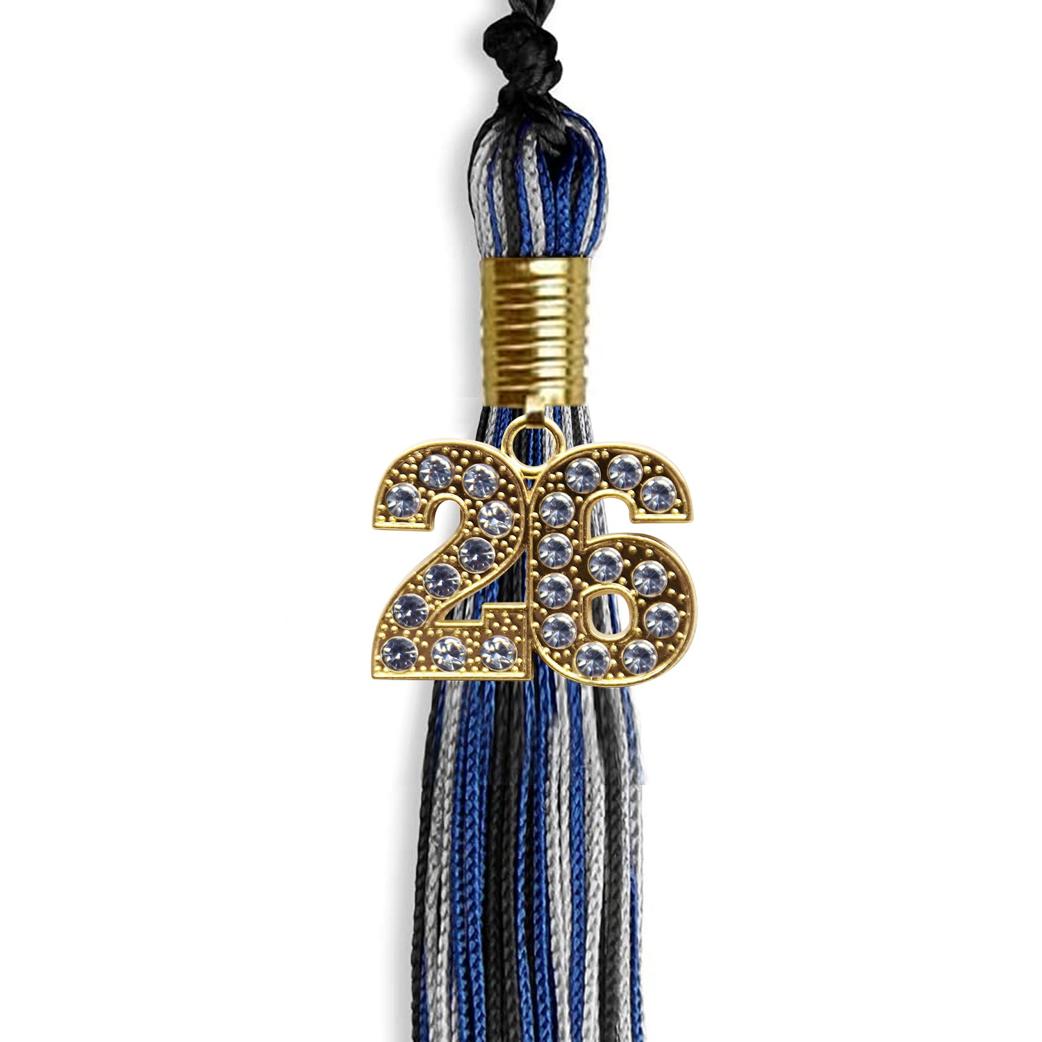 Black/Royal Blue/Silver Mixed Color Graduation Tassel with Gold Date Drop