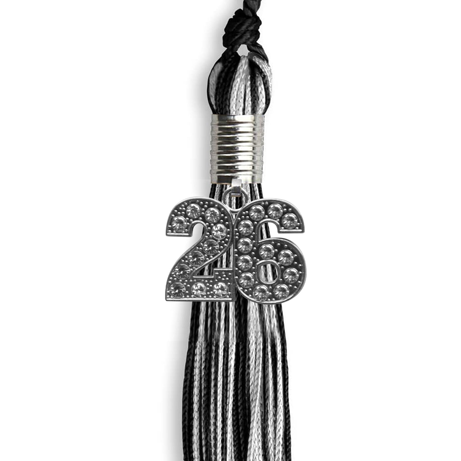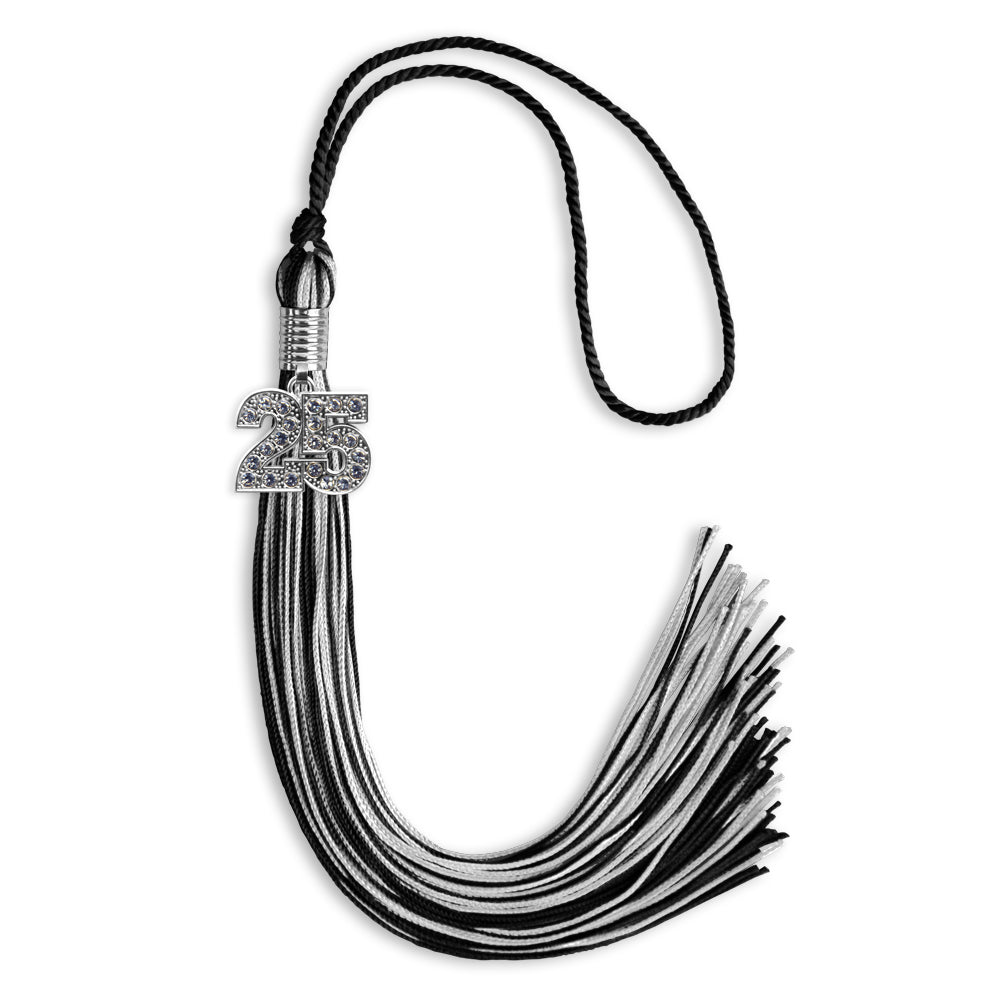 Black/Silver Mixed Color Graduation Tassel with Silver Date Drop