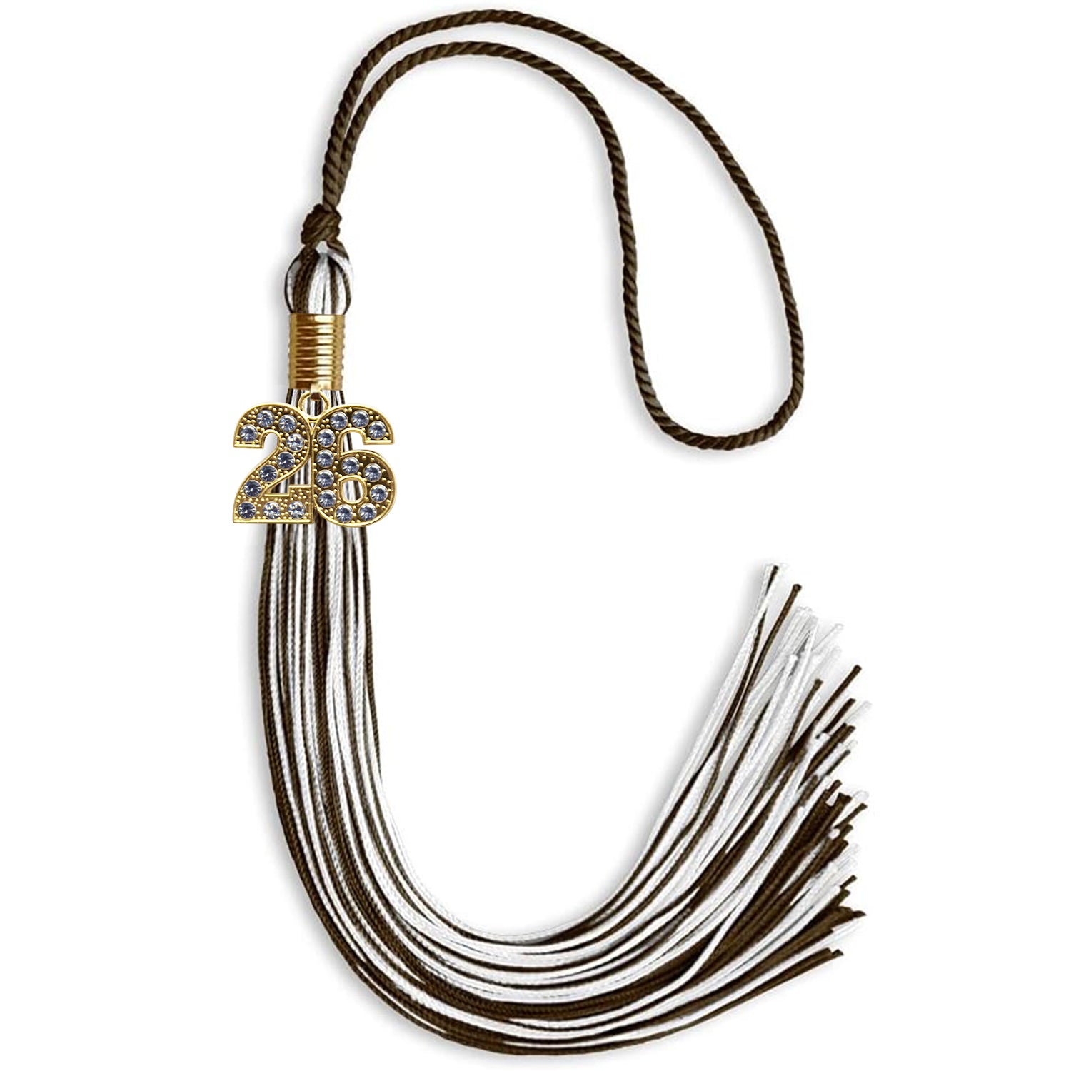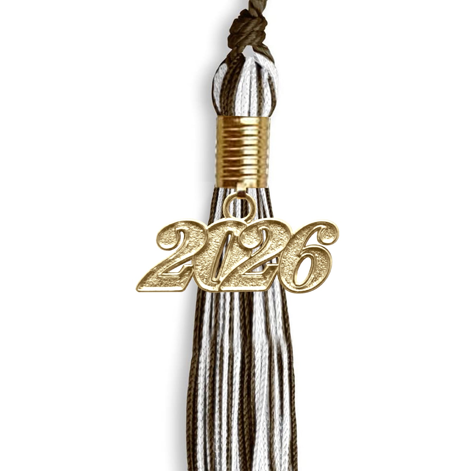 Brown/White Mixed Color Graduation Tassel with Gold Date Drop