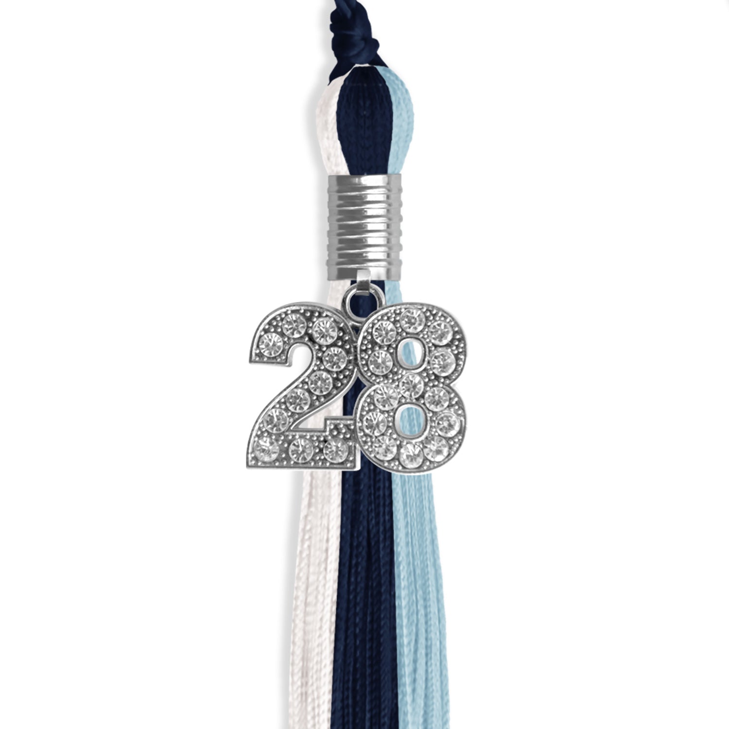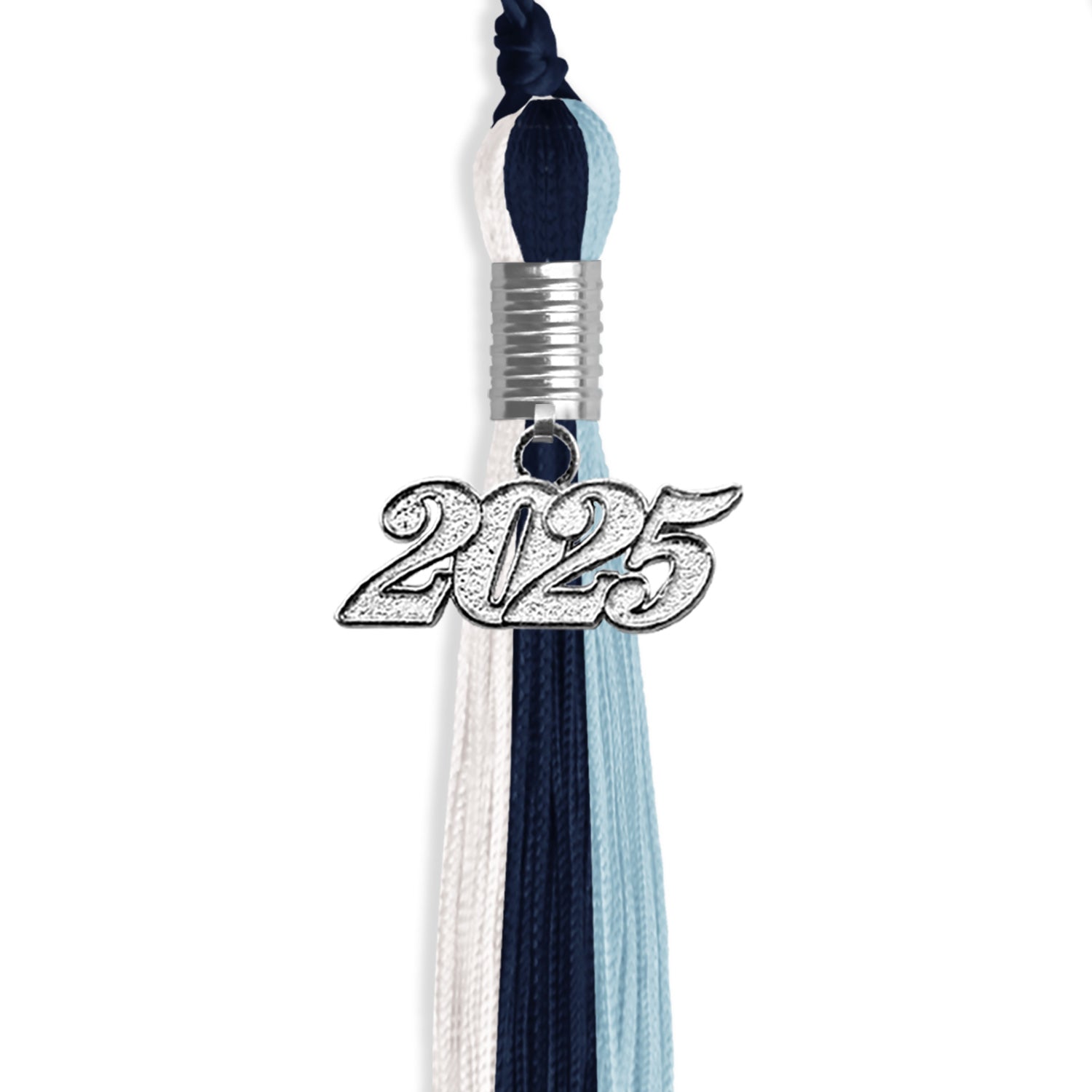 Dark Navy Blue/Light Blue/White Graduation Tassel with Silver Date Drop