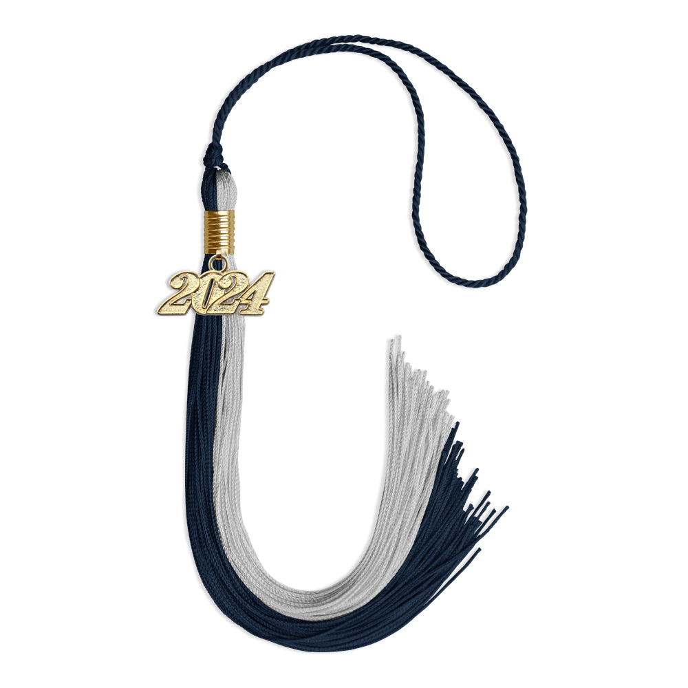 Double Color Tassel with Gold Date Drop (Dark Navy Blue/Grey)