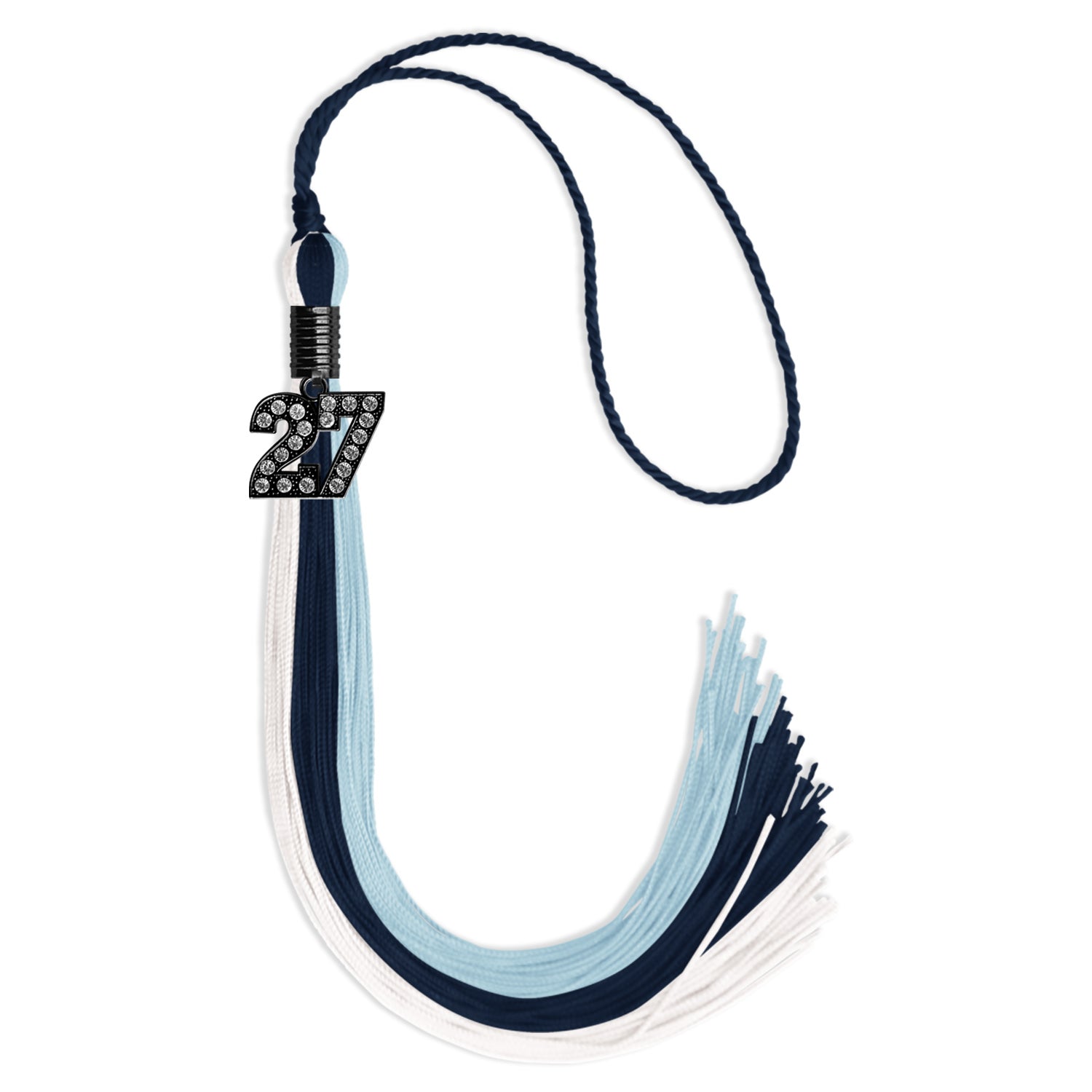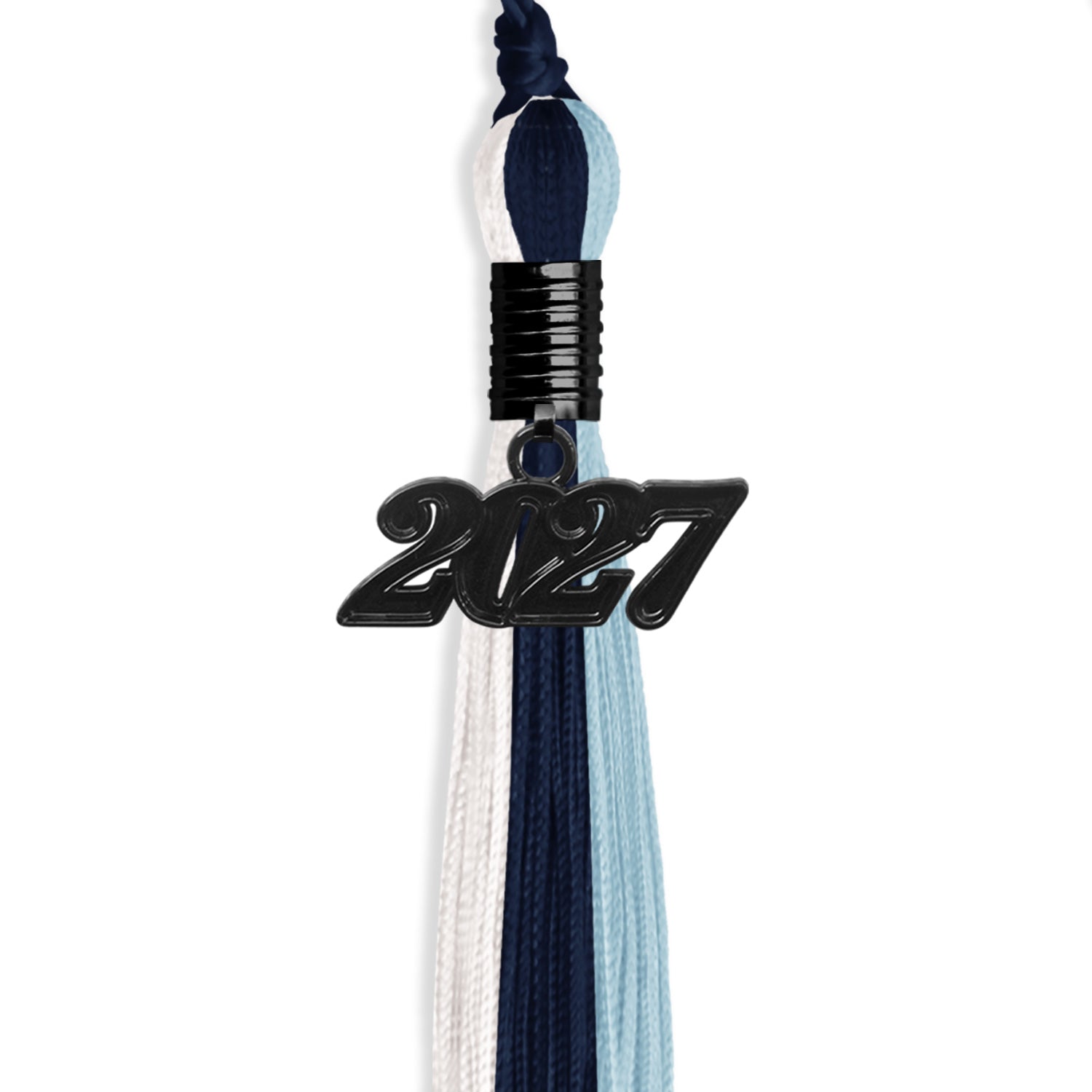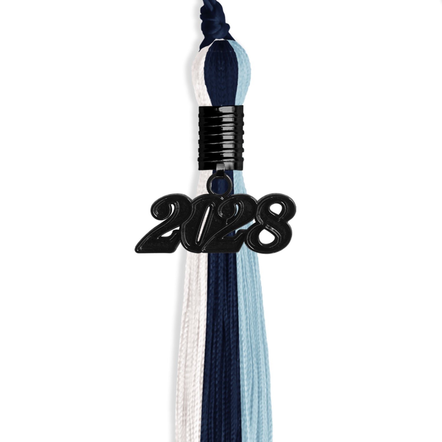 Navy Blue/Light Blue/White Graduation Tassel with Black Date Drop