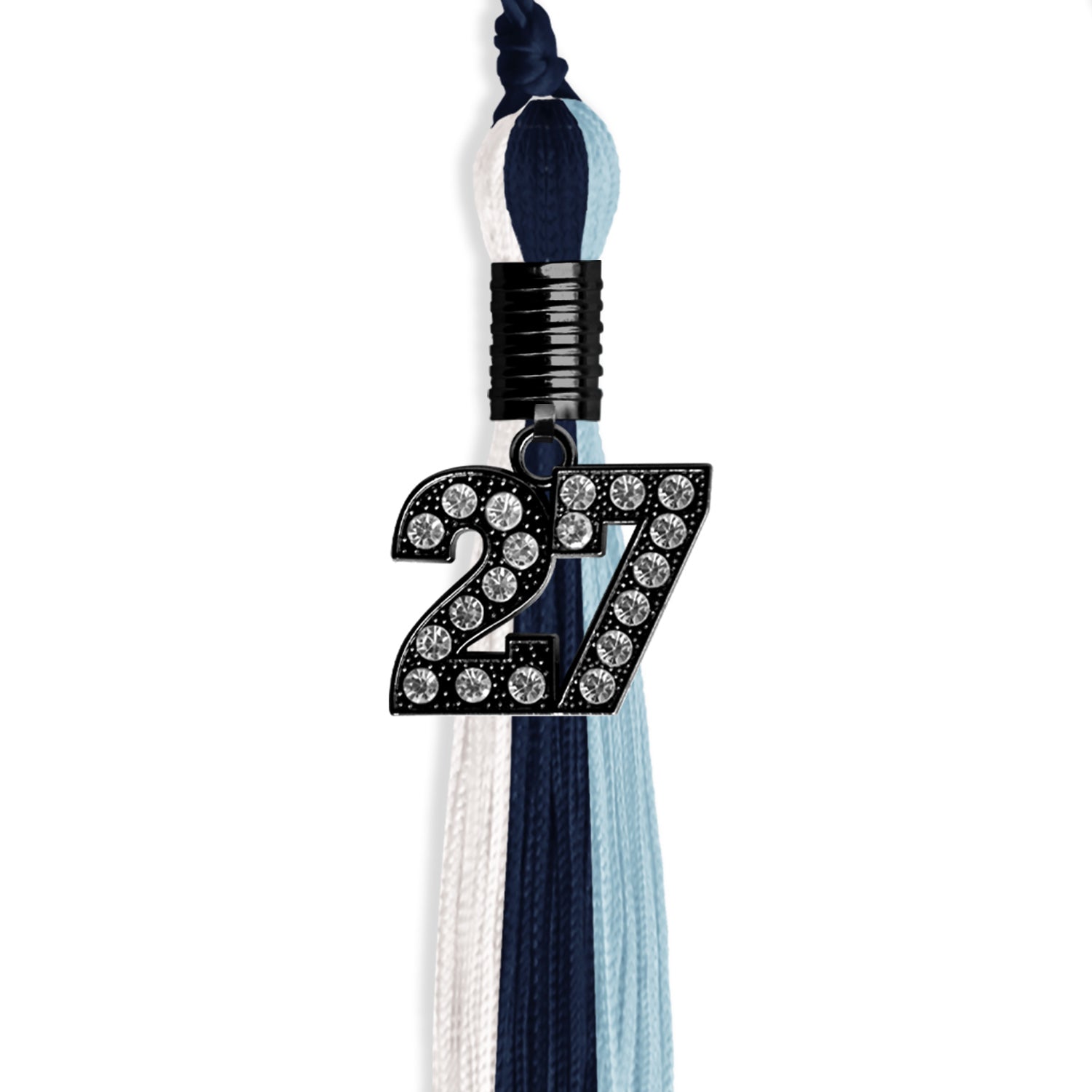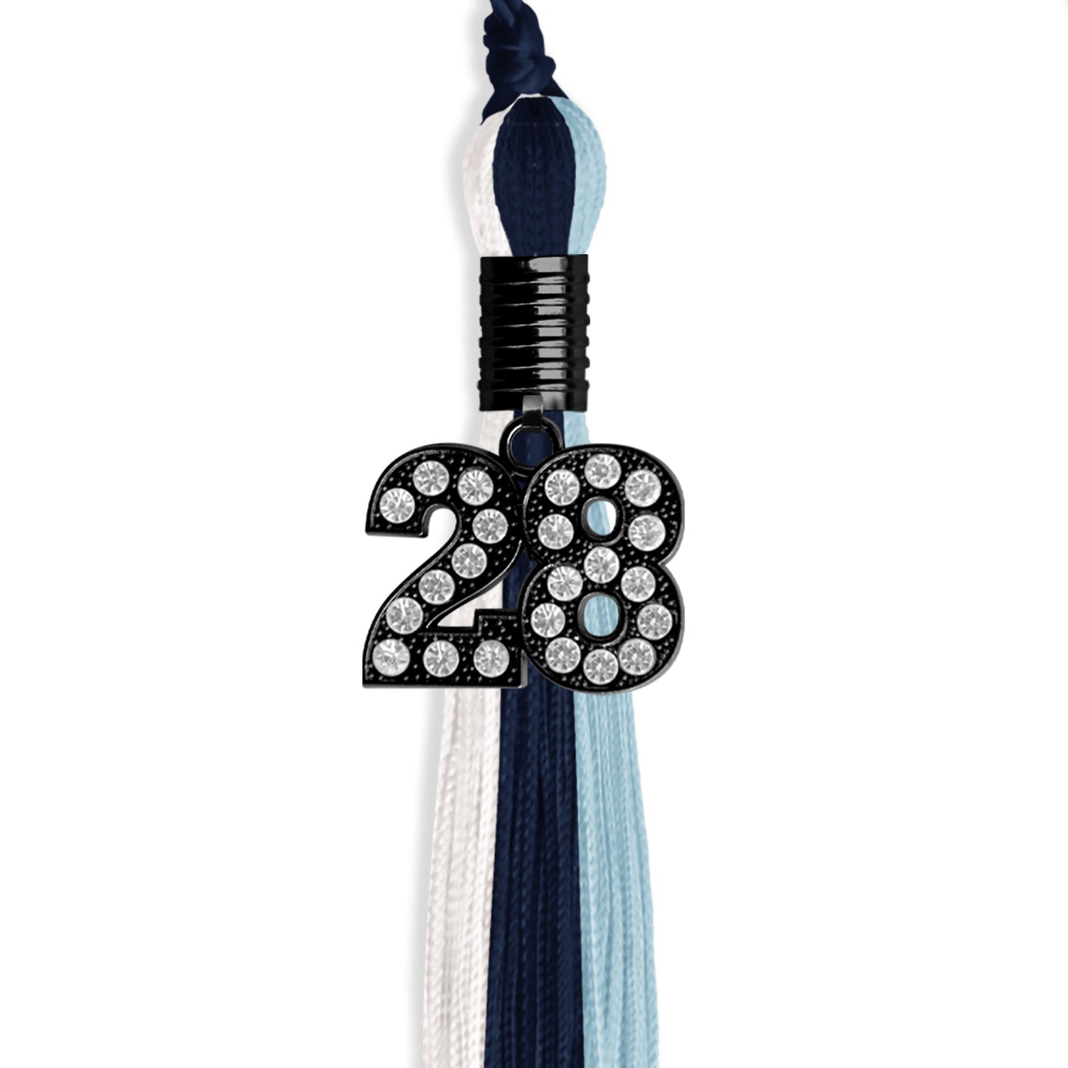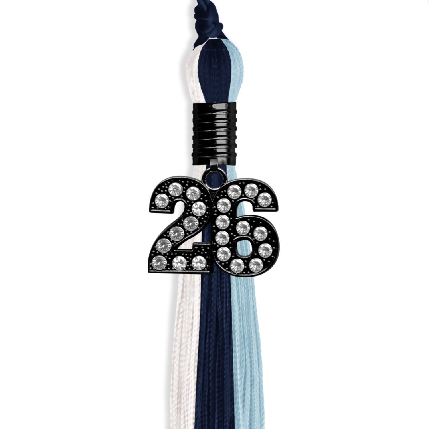 Navy Blue/Light Blue/White Graduation Tassel with Black Date Drop