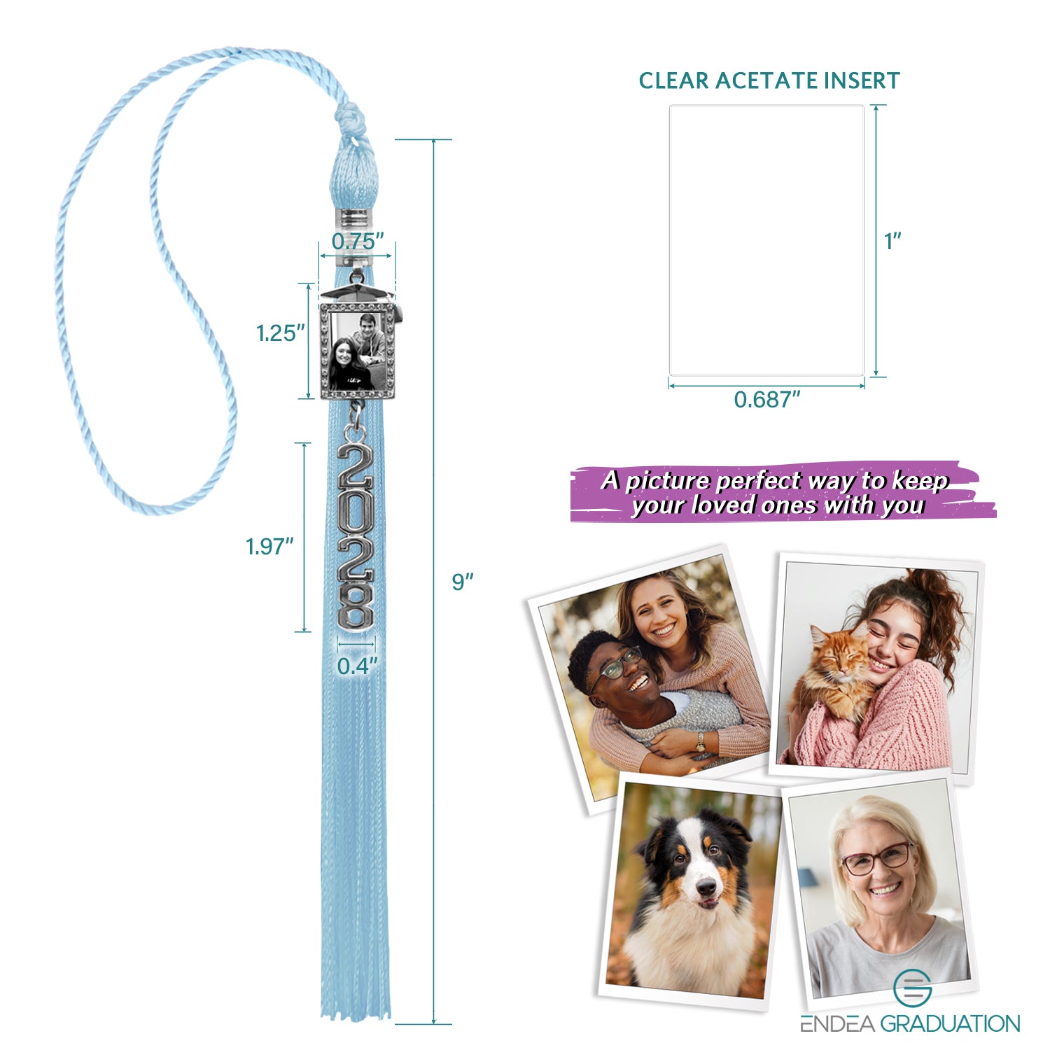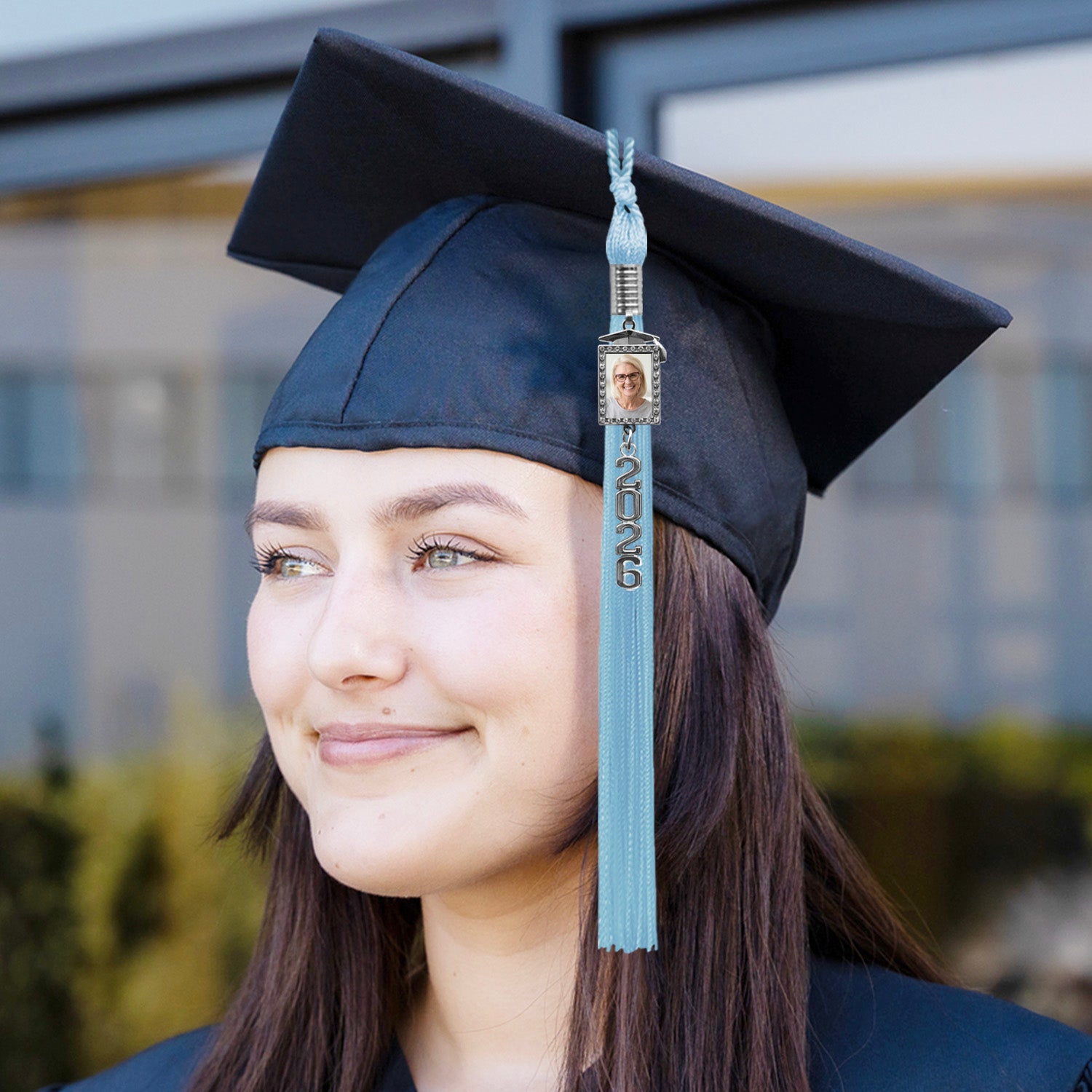 Customizable Photo Charm: Designed to securely hold a photo measuring 1” by 0.7”, offering a personalized touch to your graduation tassel.