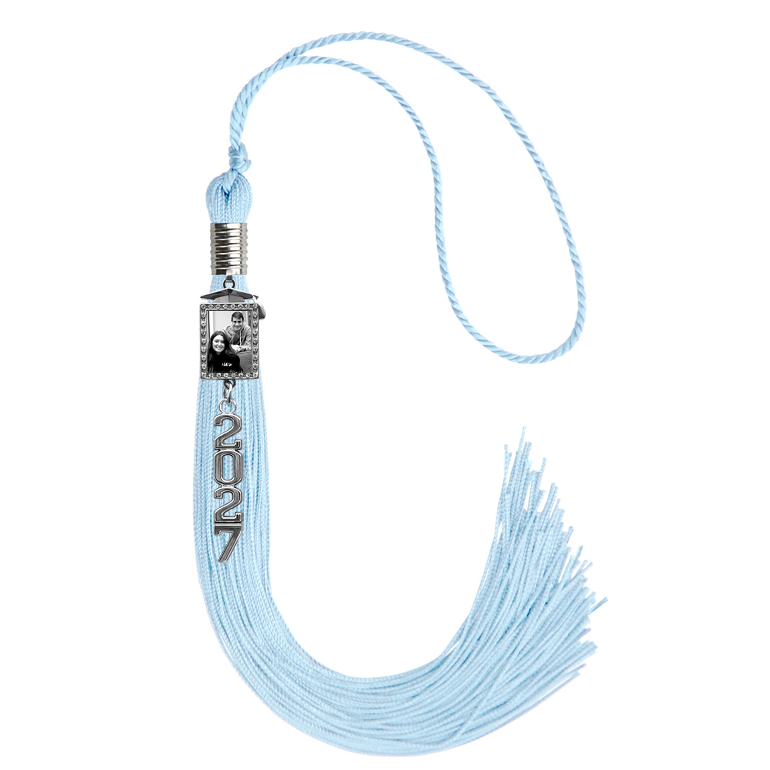 Light Blue Tassel with Photo Frame Charm and Stacked Date Drop