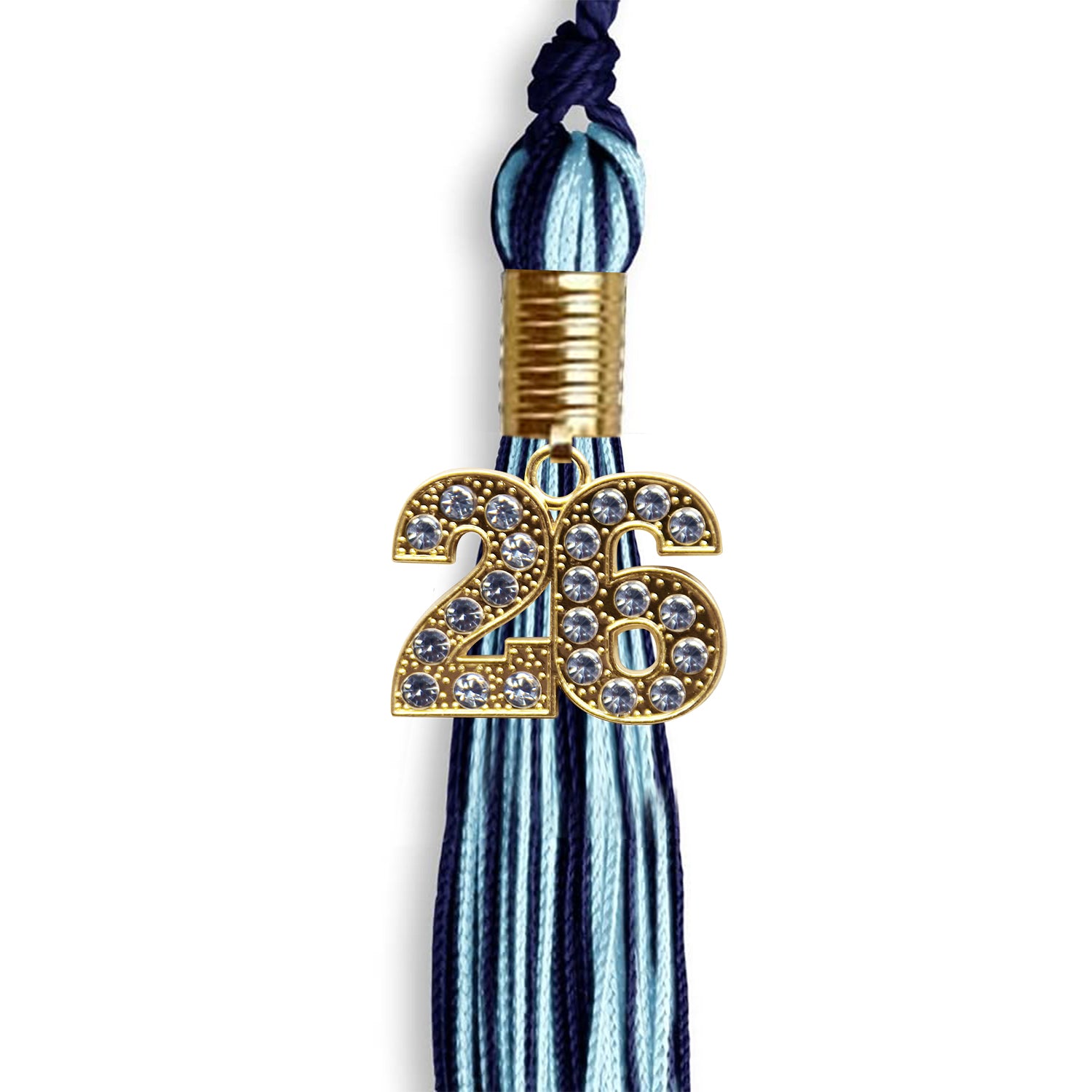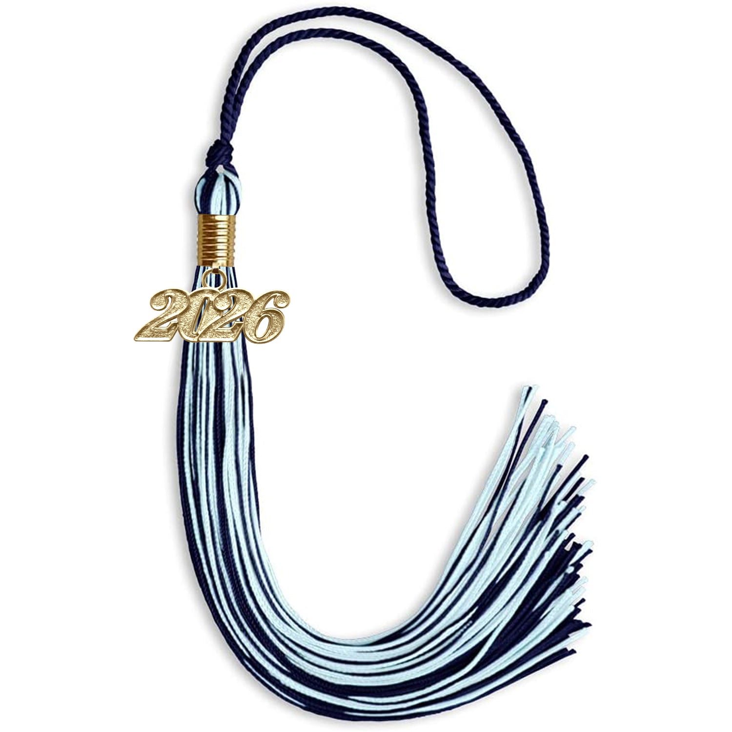 Navy Blue/Light Blue Mixed Color Graduation Tassel with Gold Date Drop