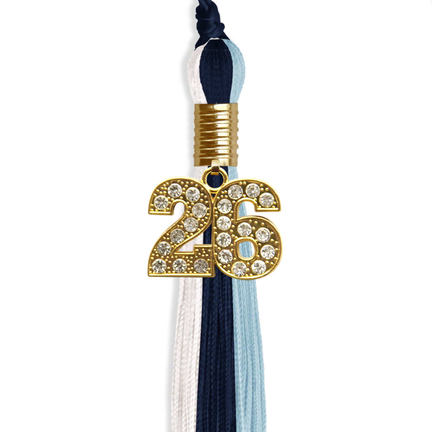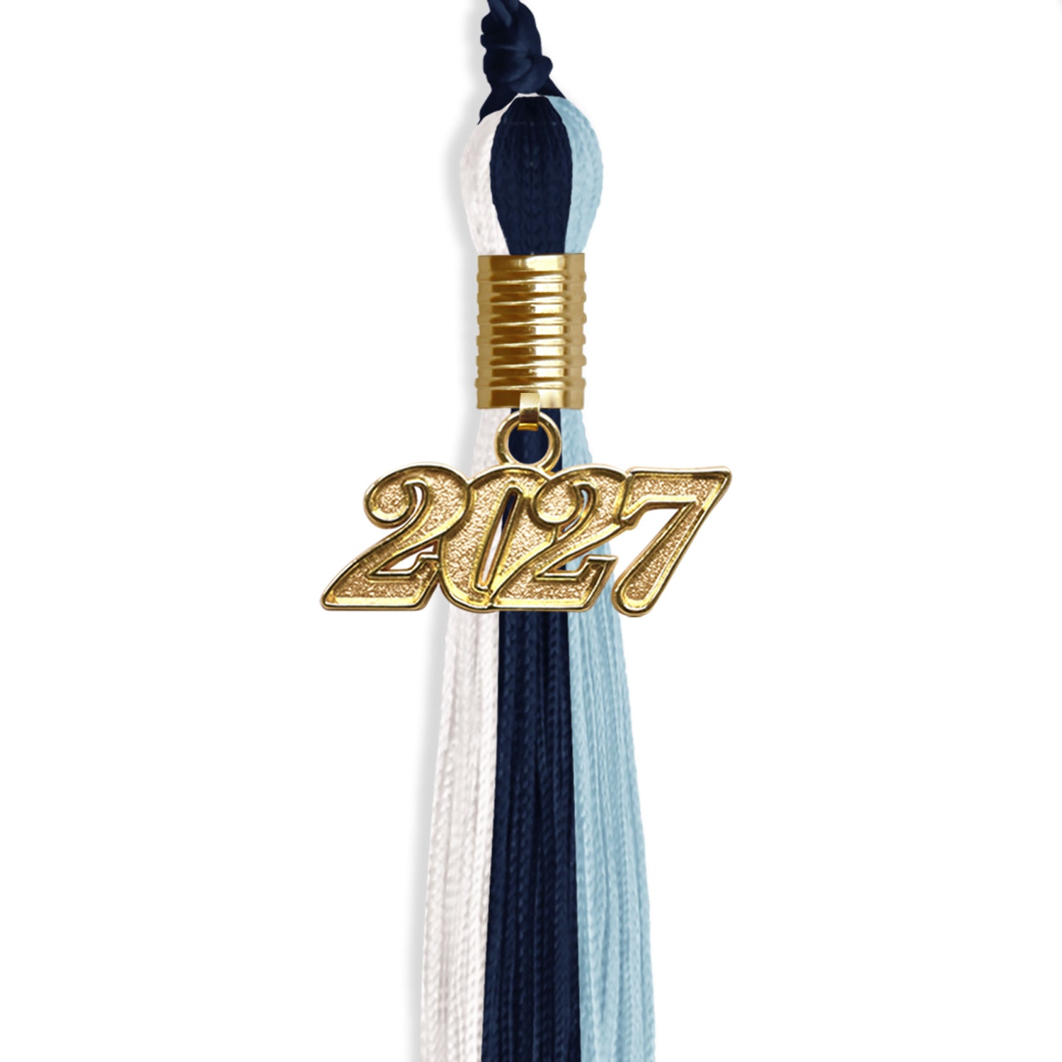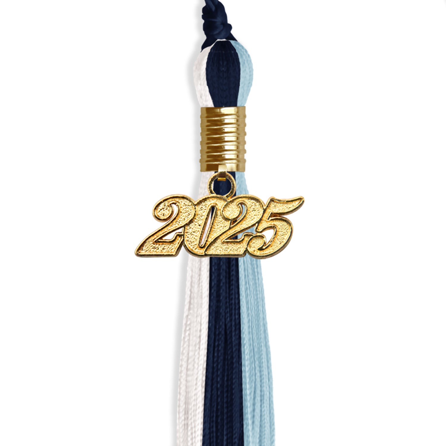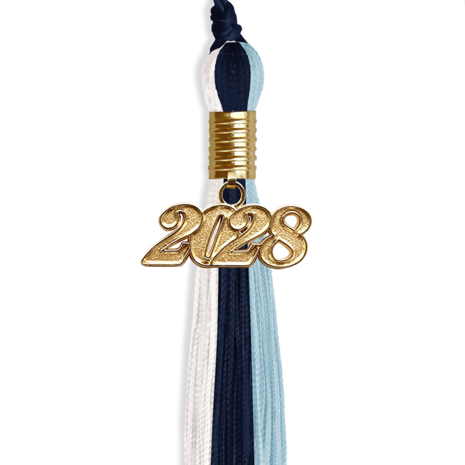 Navy Blue/Light Blue/White Graduation Tassel with Gold Date Drop