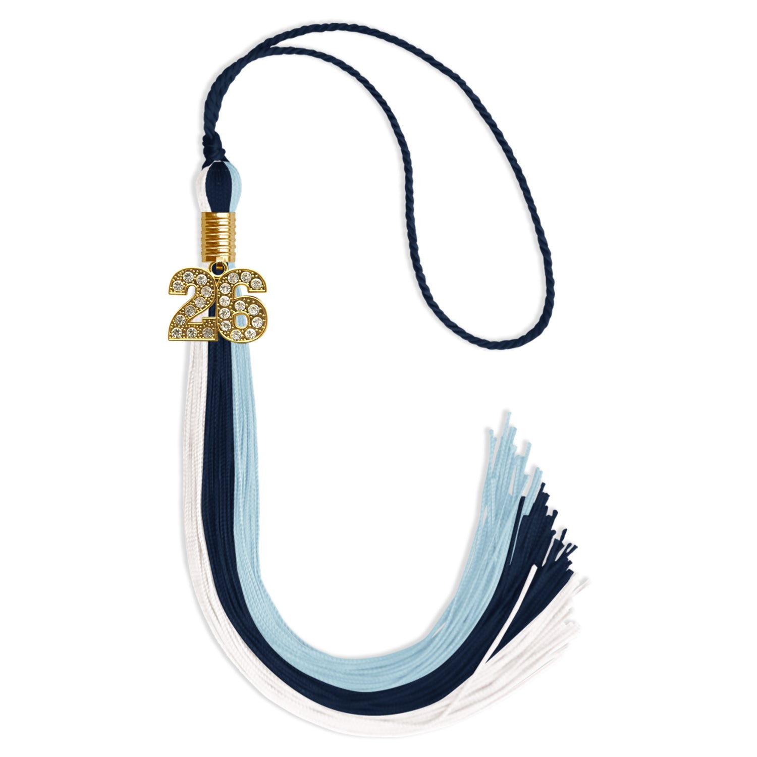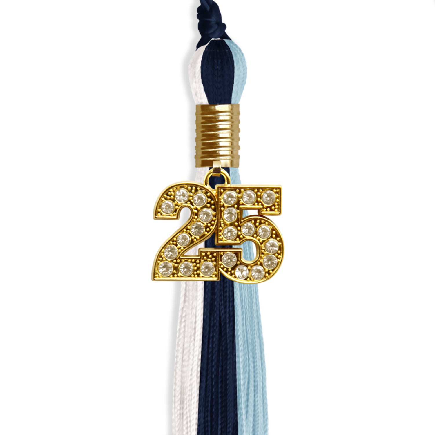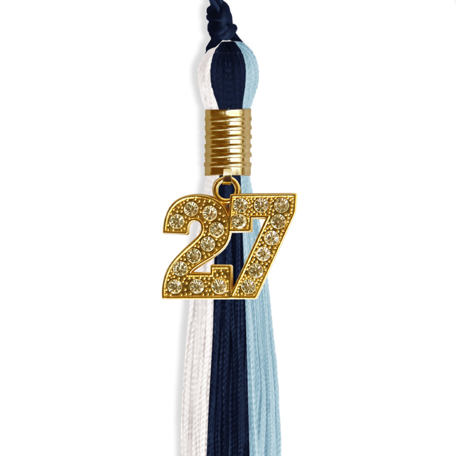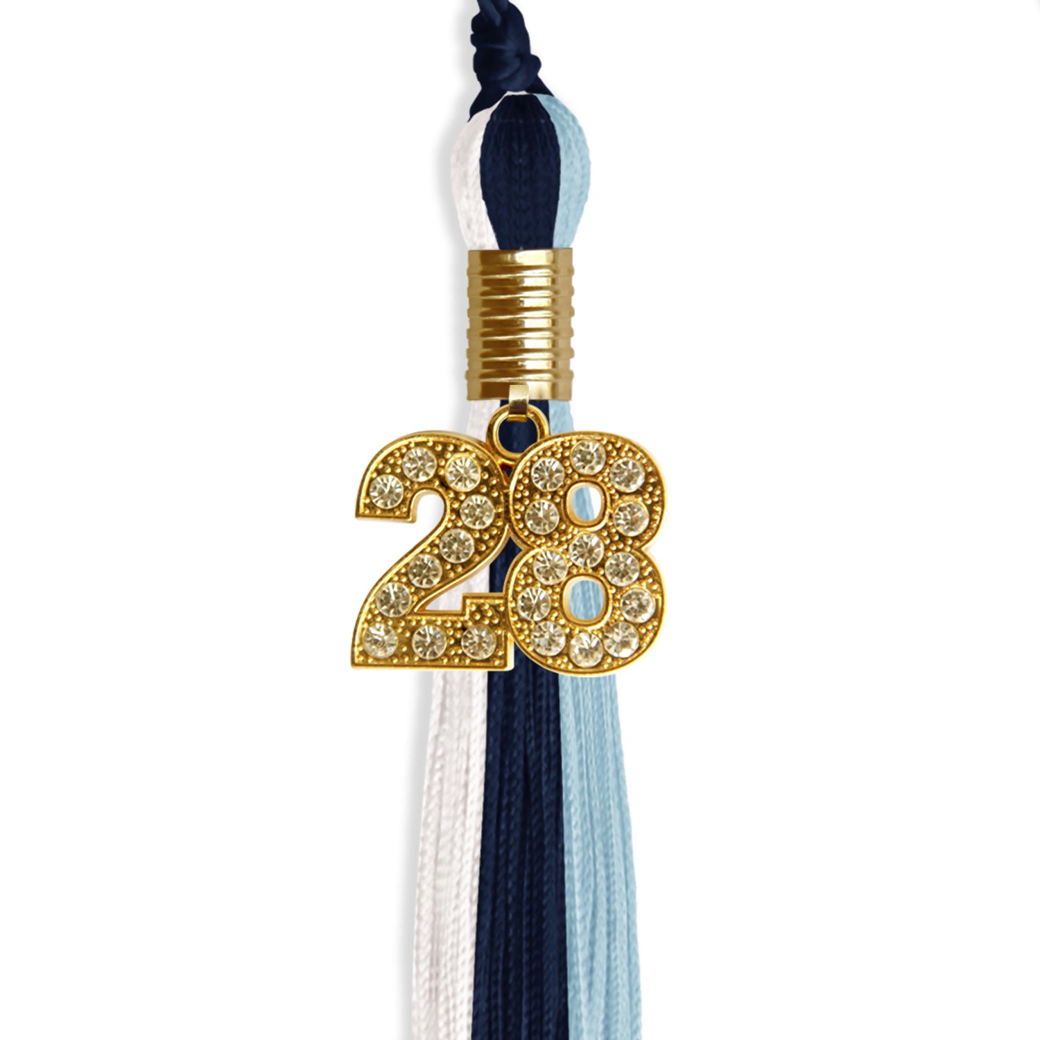 Navy Blue/Light Blue/White Graduation Tassel with Gold Date Drop