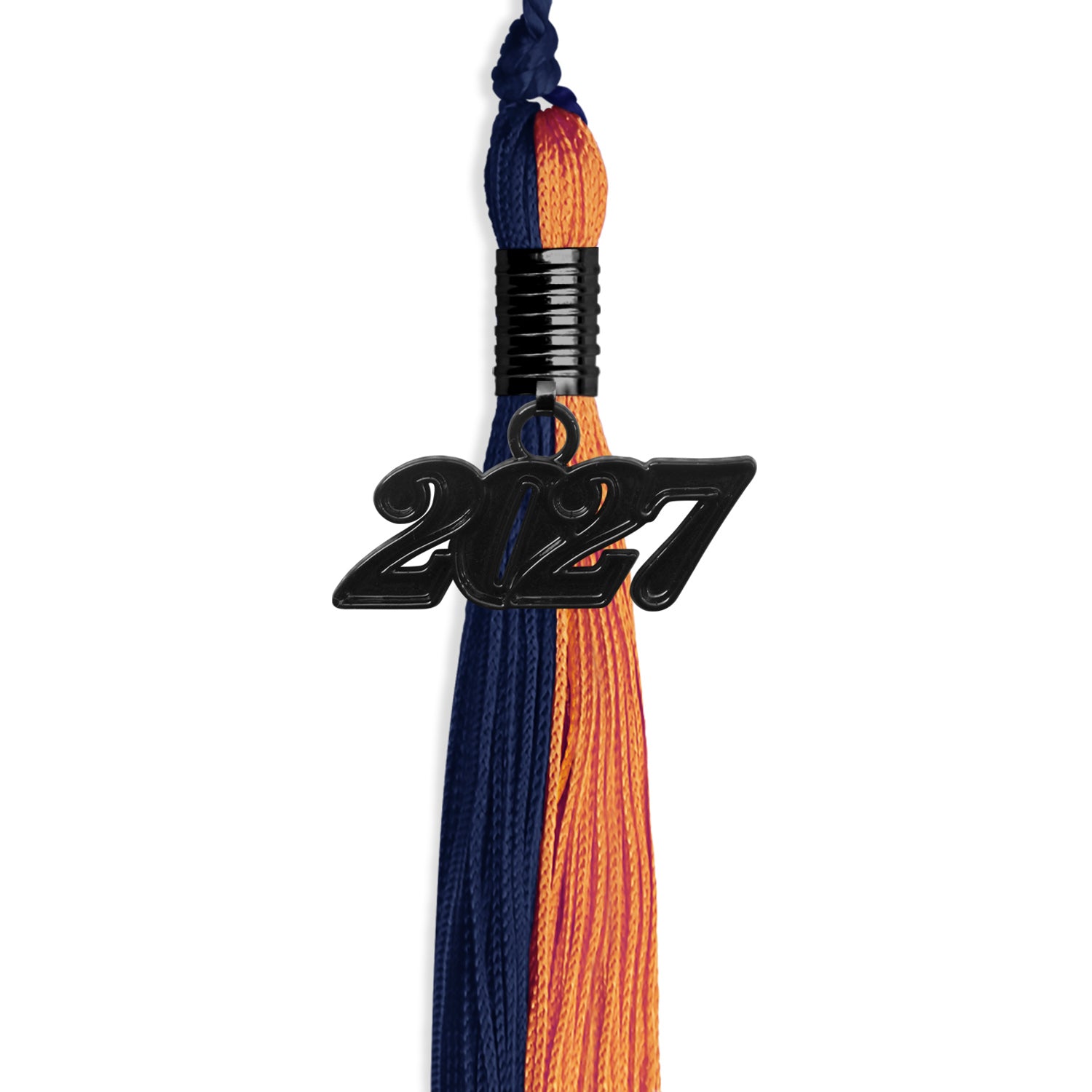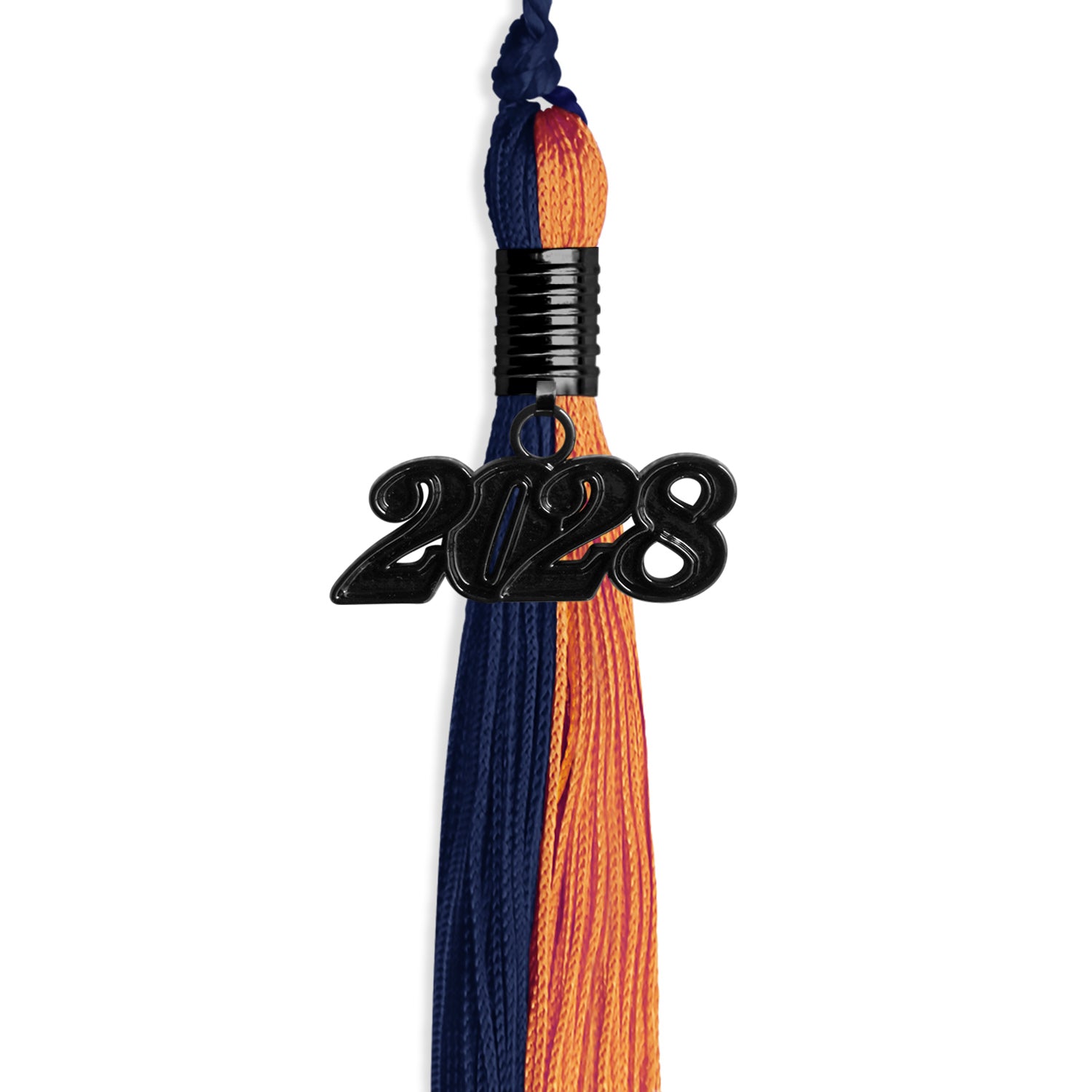 Navy Blue/Orange Graduation Tassel with Black Date Drop
