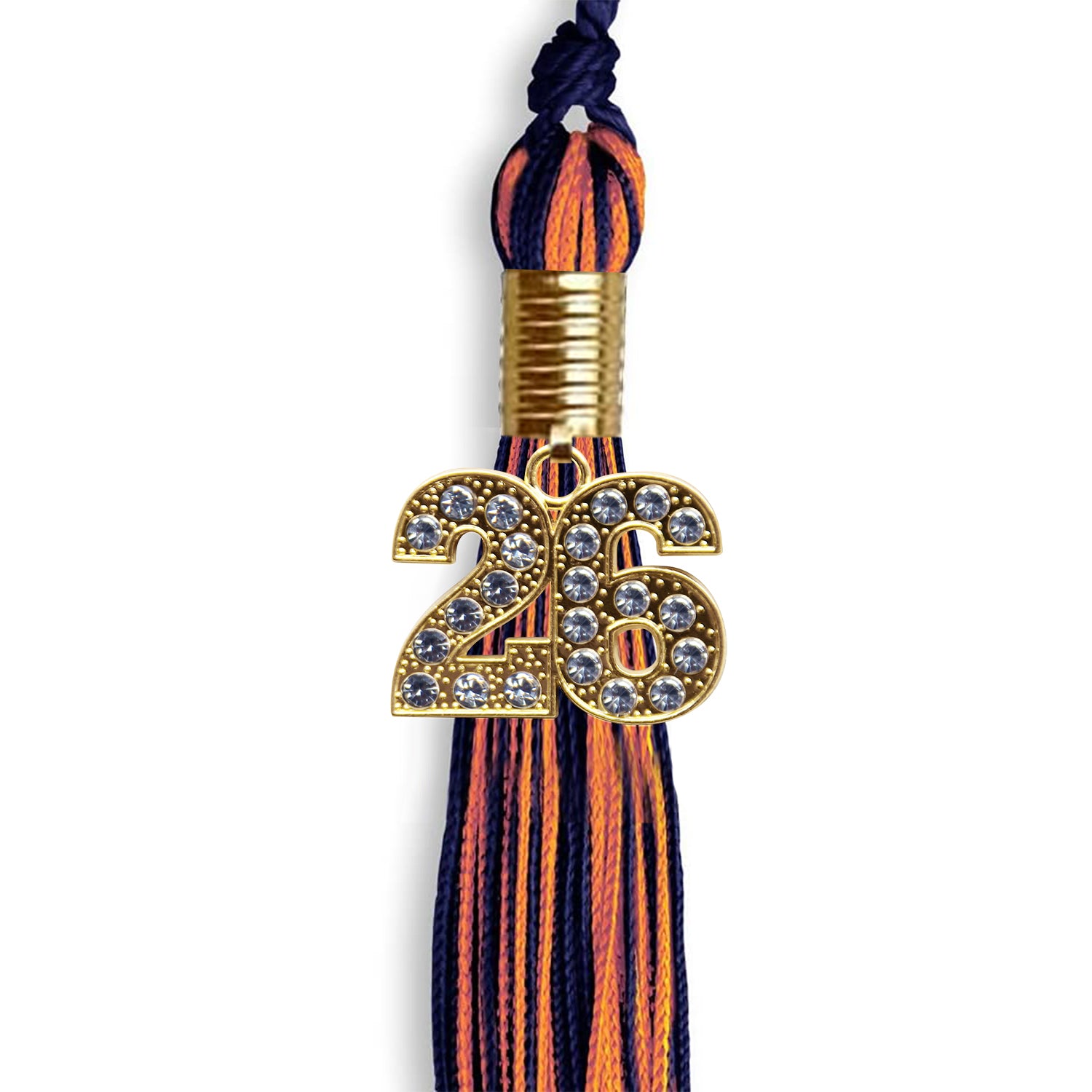 Navy Blue/Orange Mixed Color Graduation Tassel with Gold Date Drop