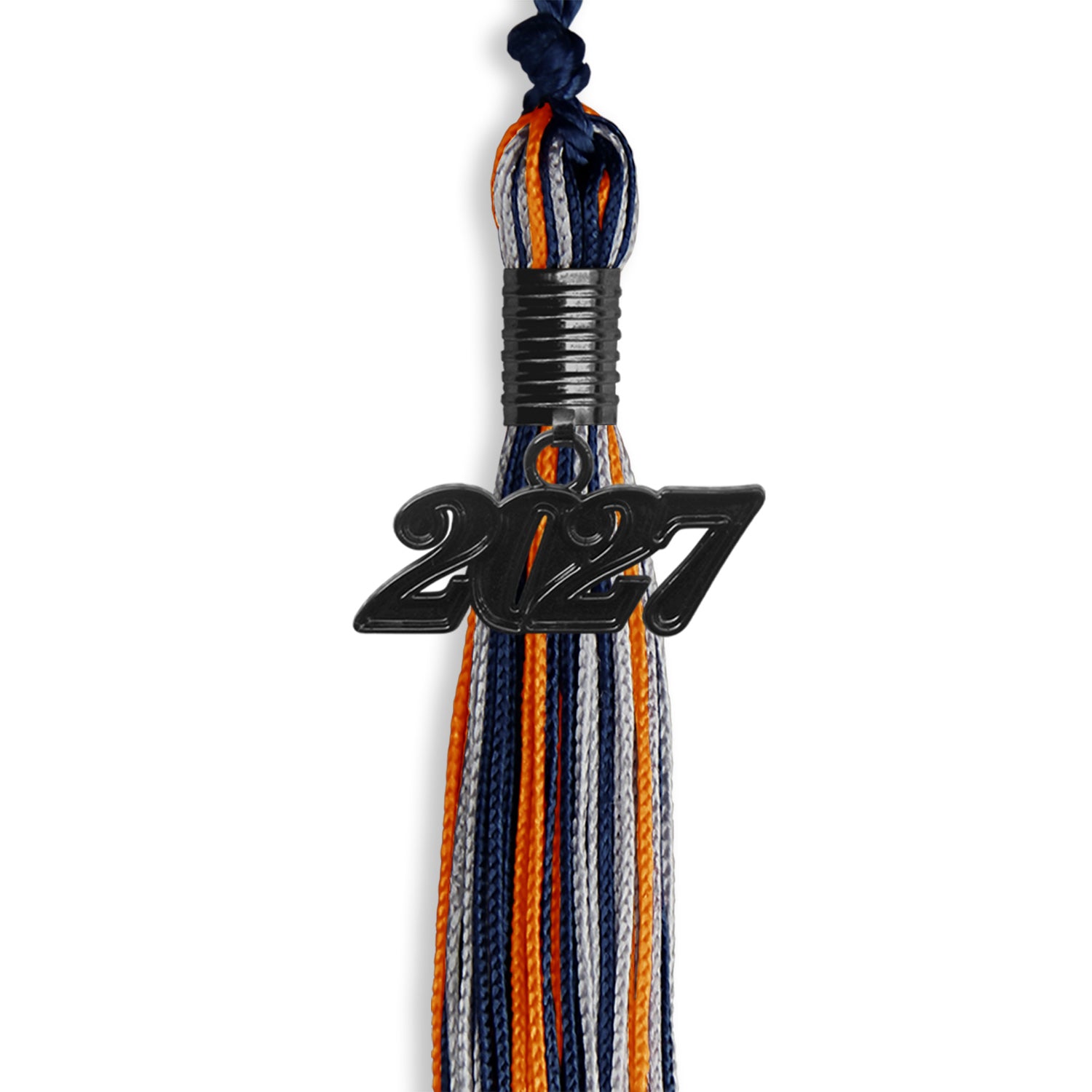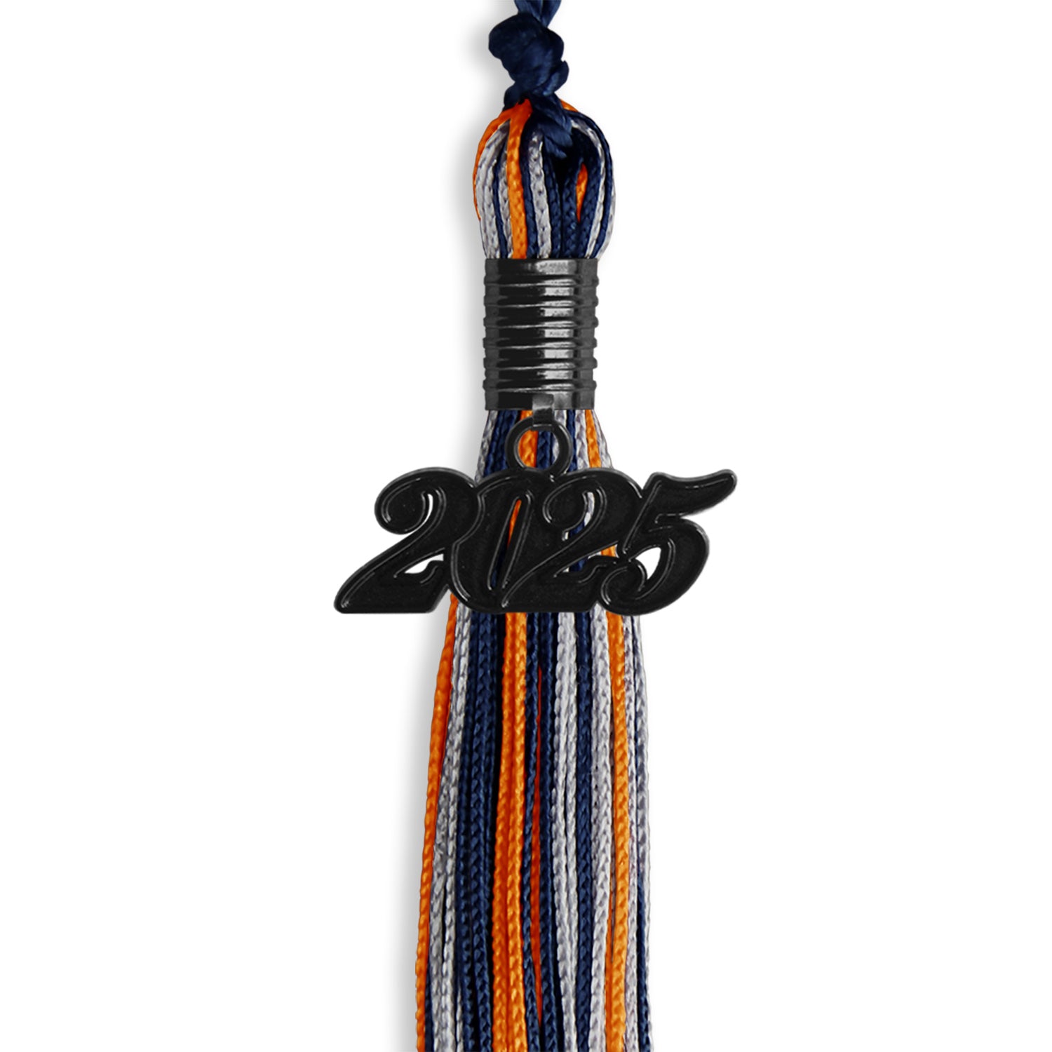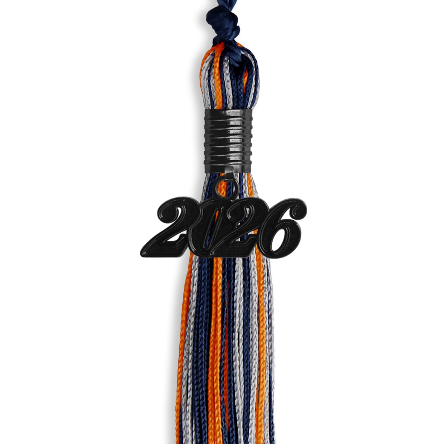 Navy Blue/Orange/Silver Mixed Color Graduation Tassel with Black Date Drop