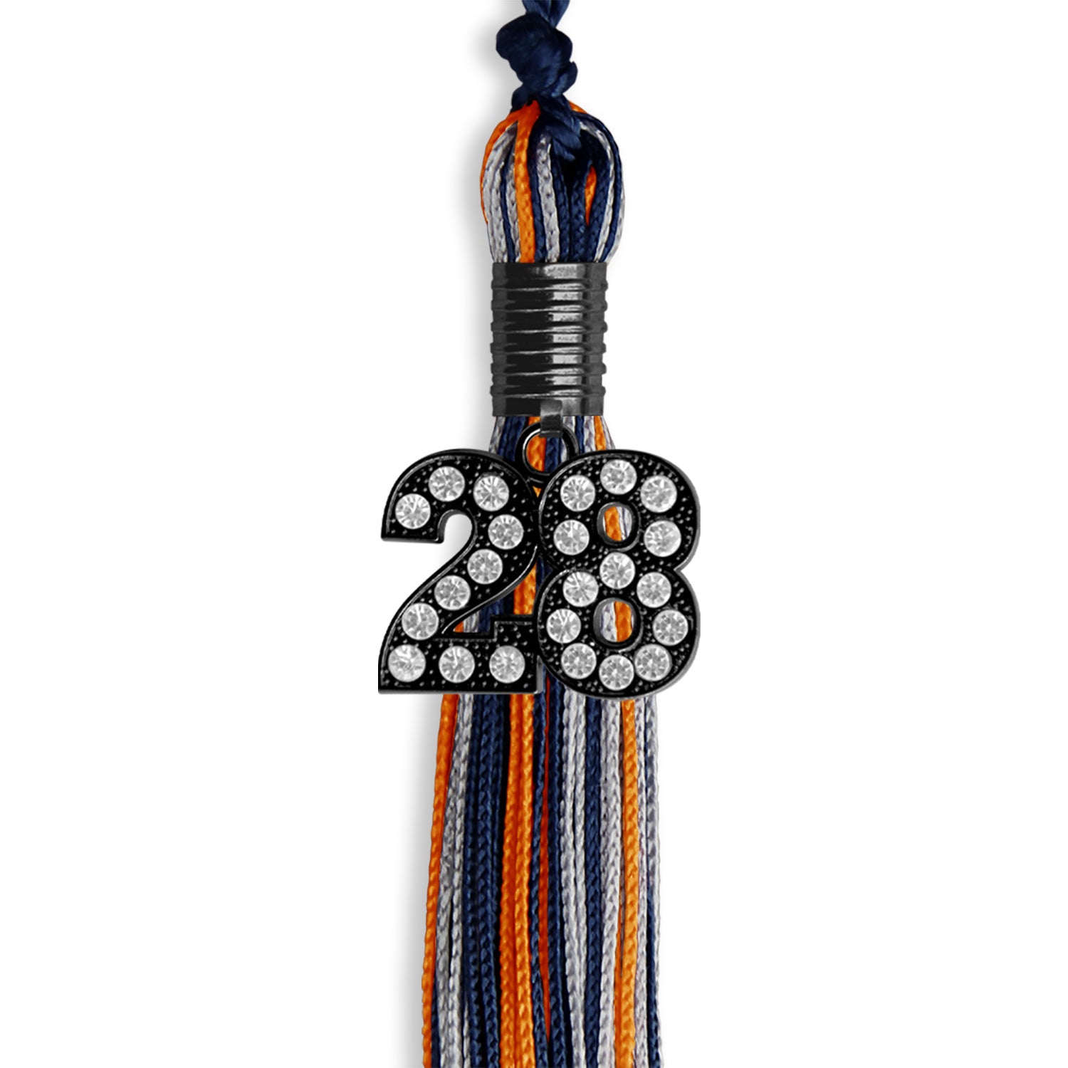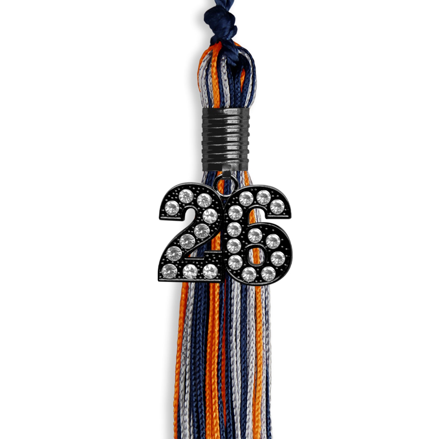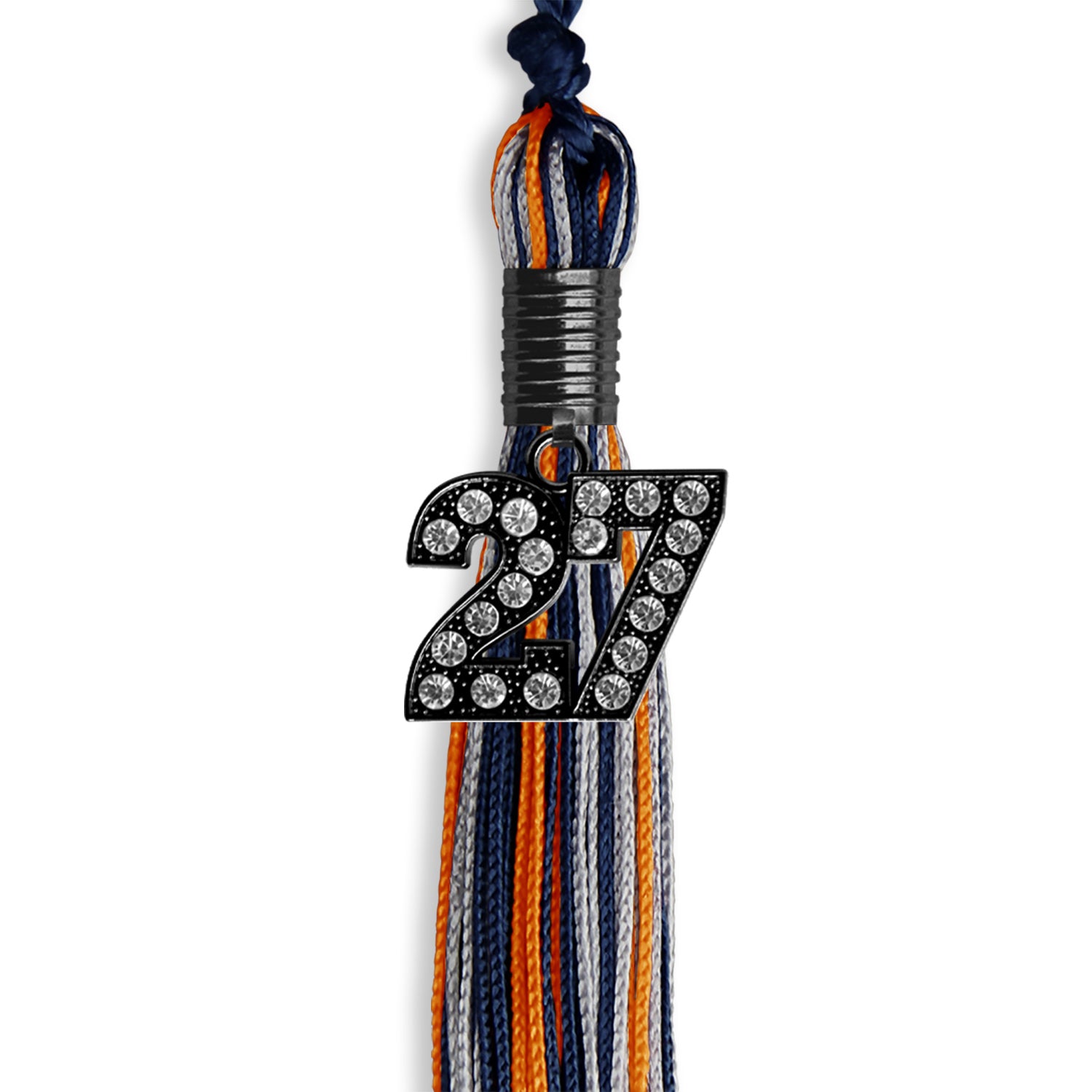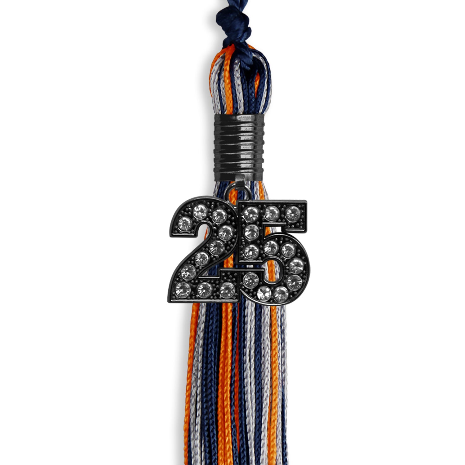Navy Blue/Orange/Silver Mixed Color Graduation Tassel with Black Date Drop