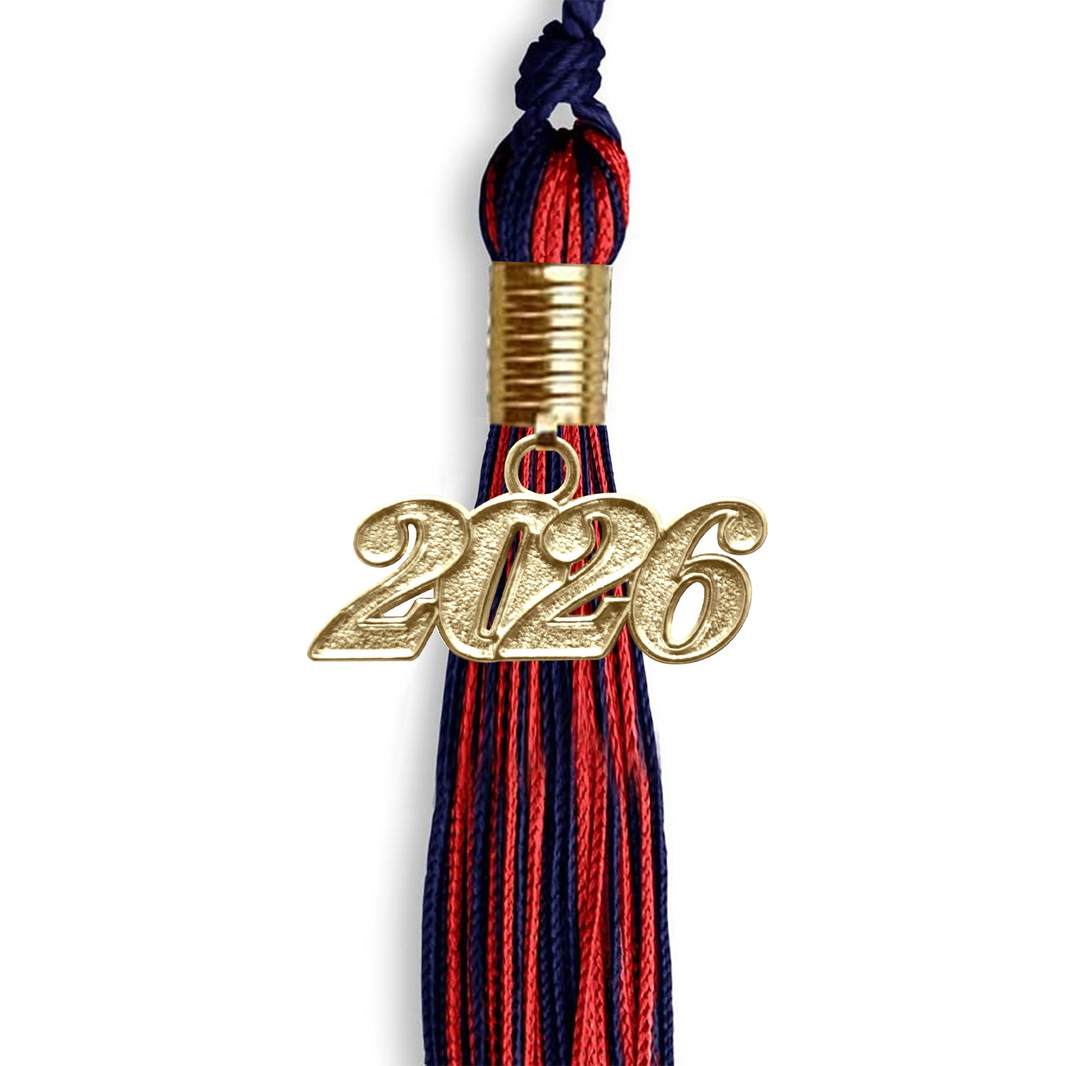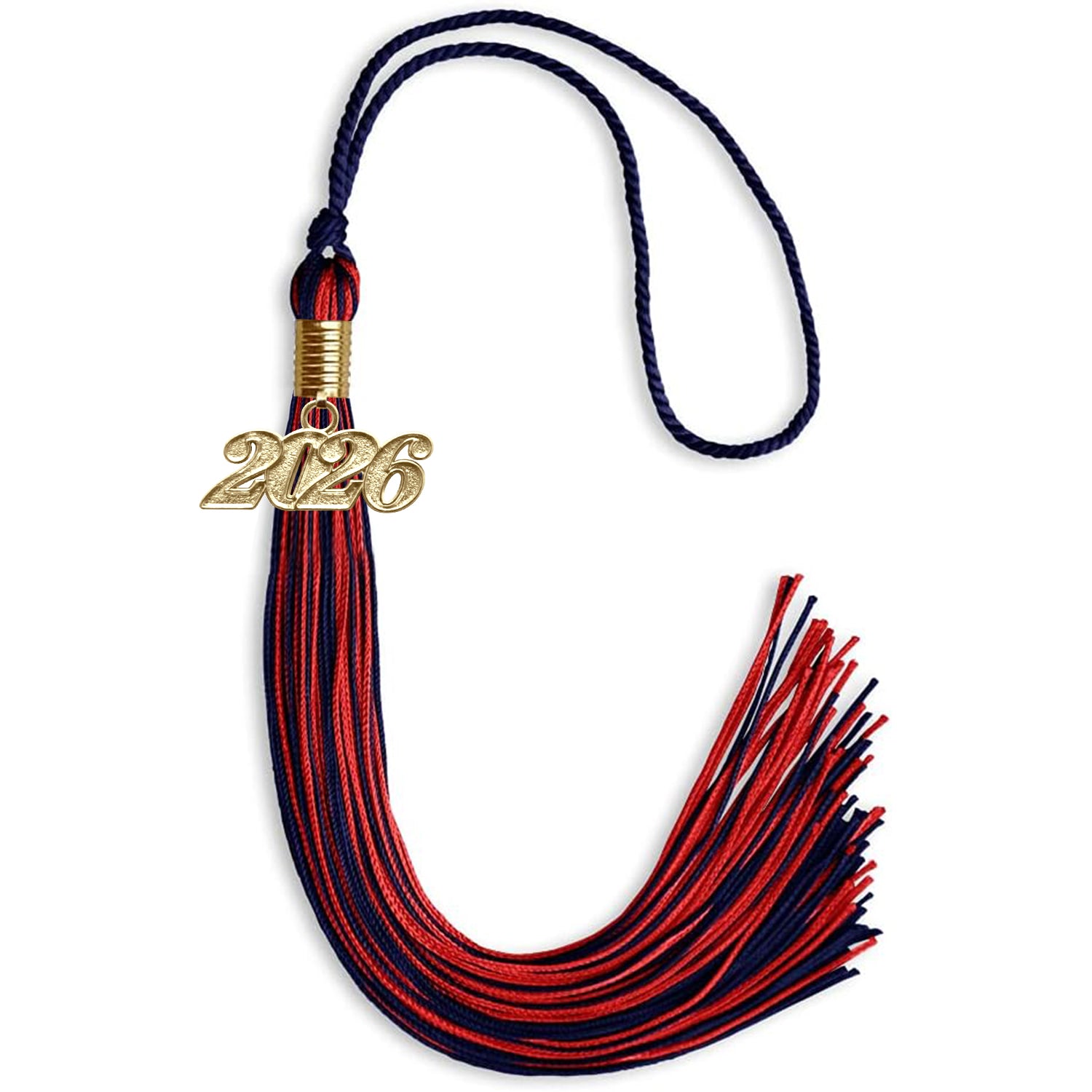 Navy Blue/Red Mixed Color Graduation Tassel with Gold Date Drop