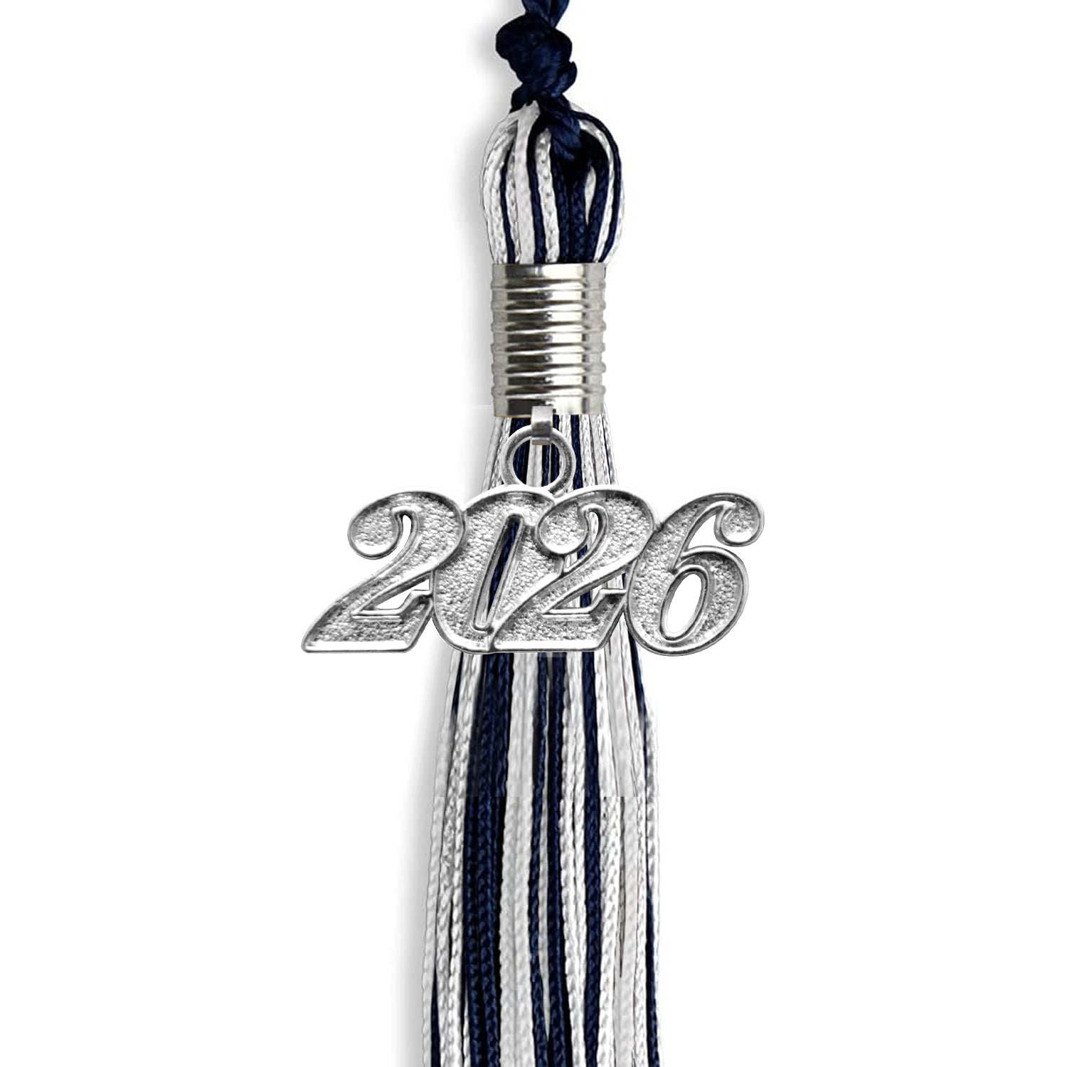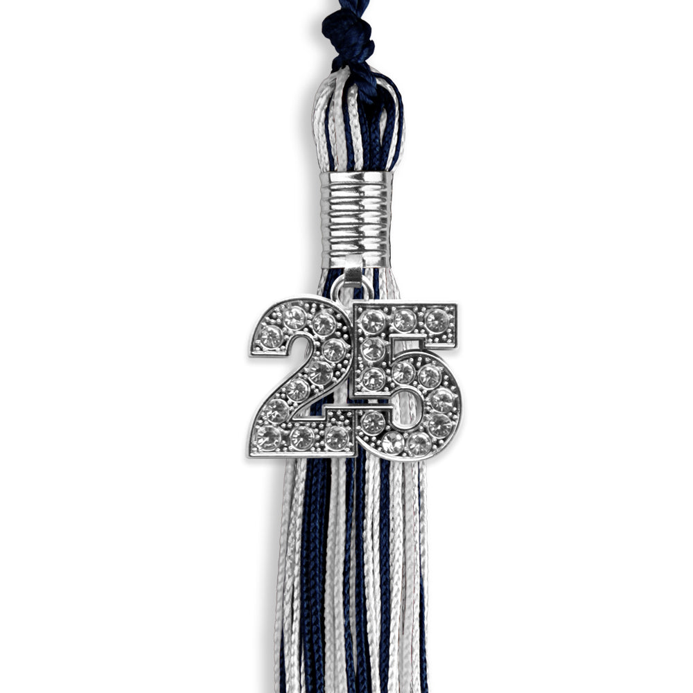 Navy Blue/Silver/White Mixed Color Graduation Tassel with Silver Date Drop