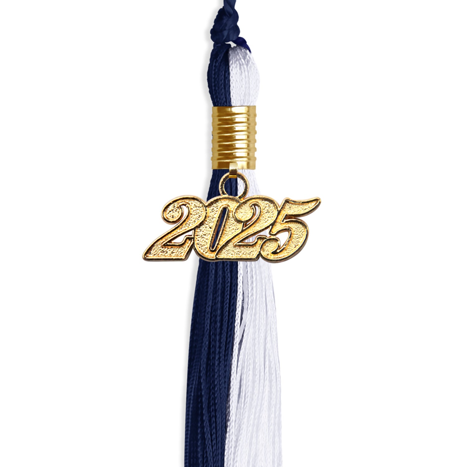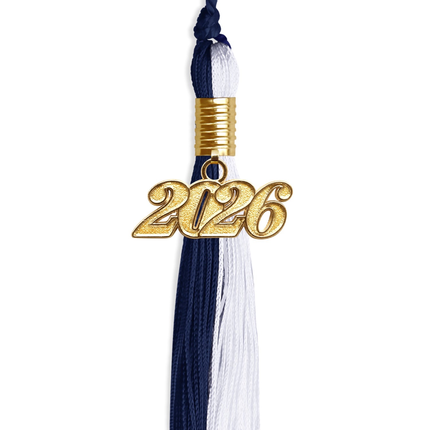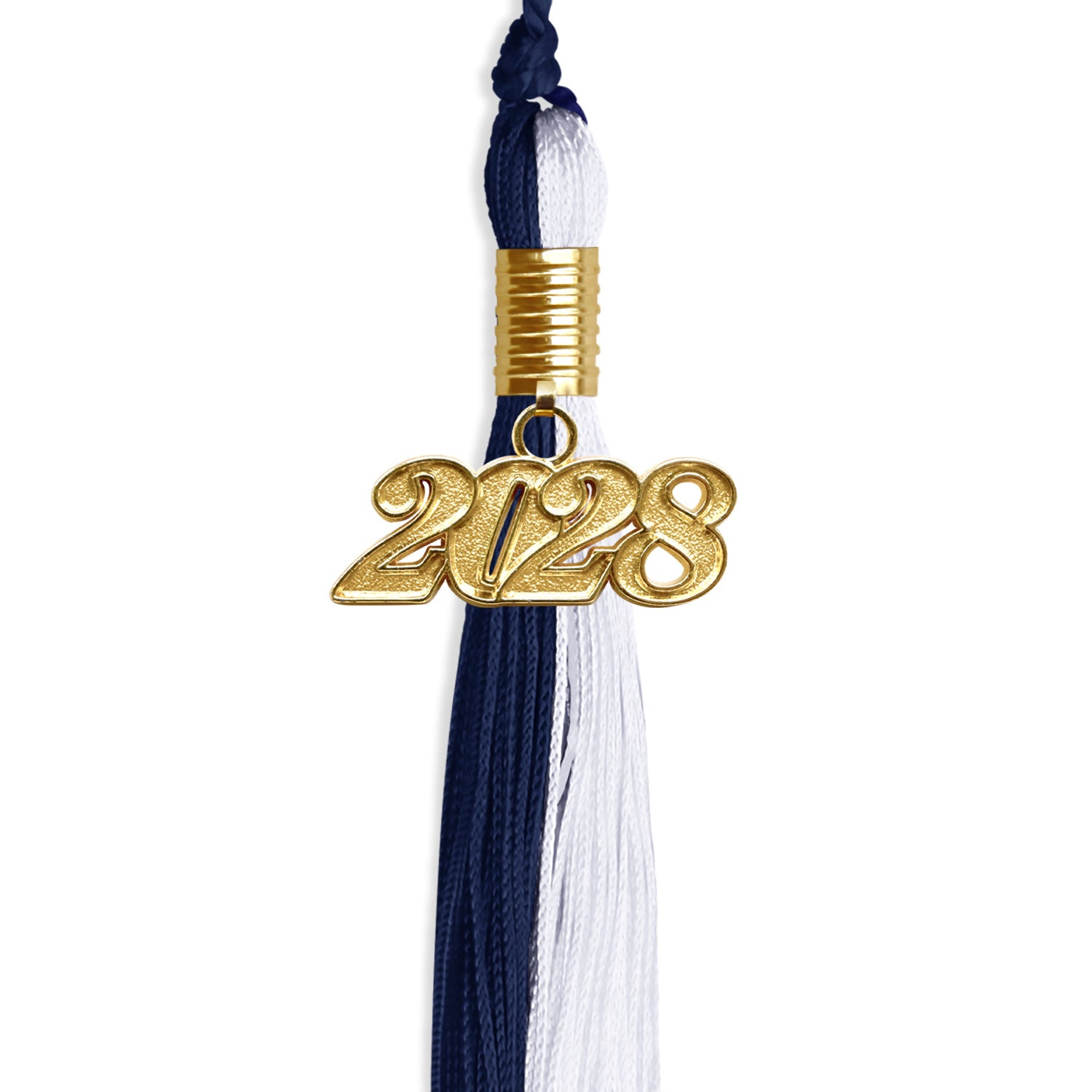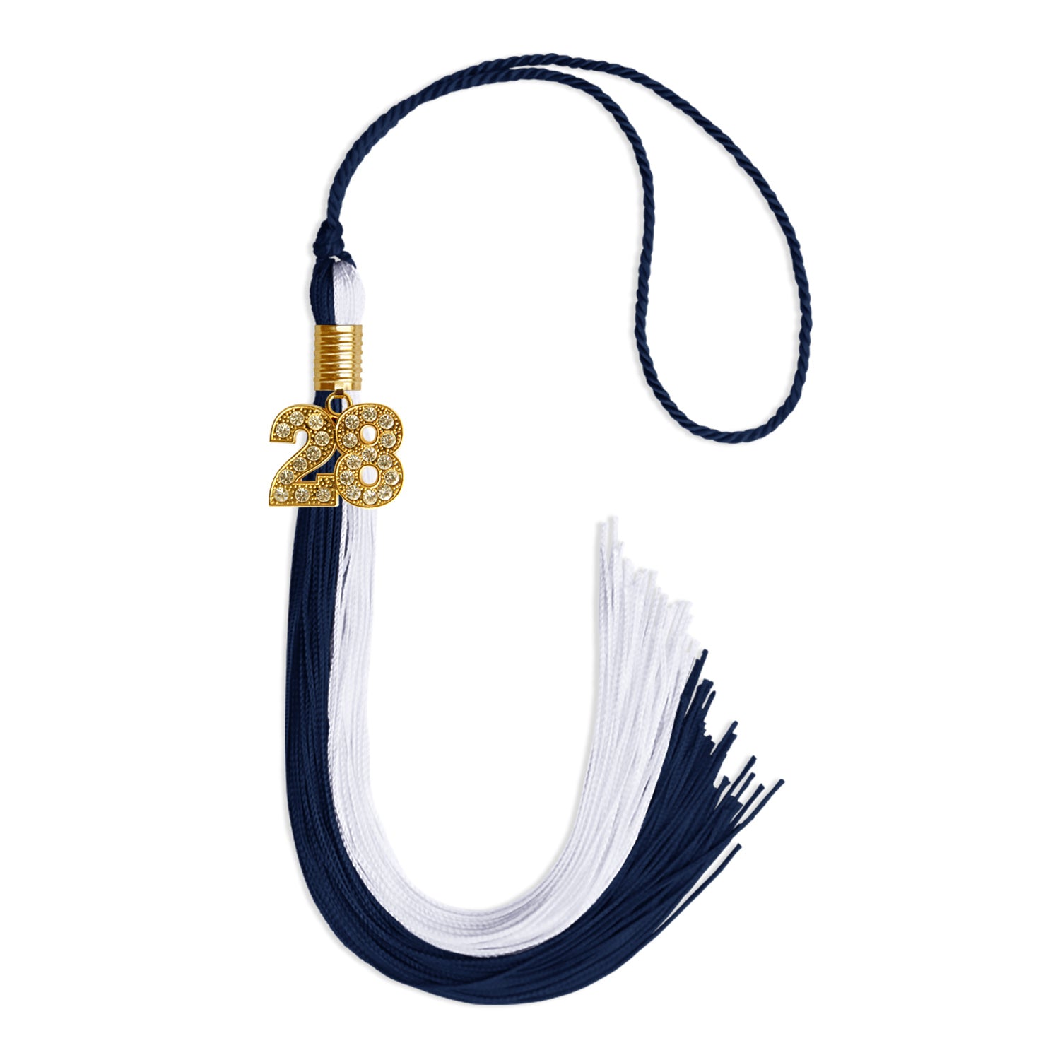 Double Color Tassel with Gold Date Drop (Navy Blue/White)