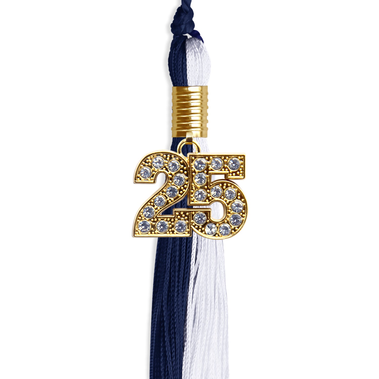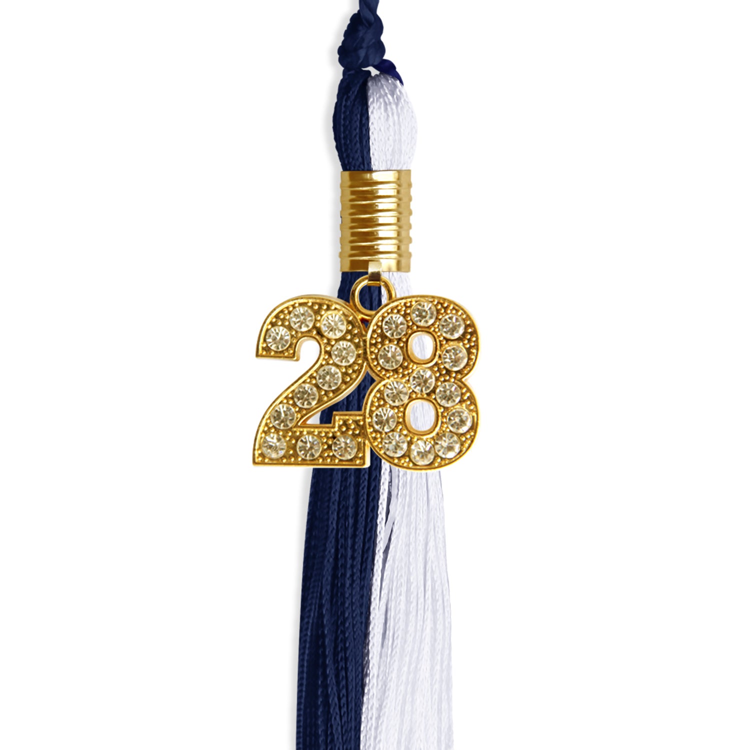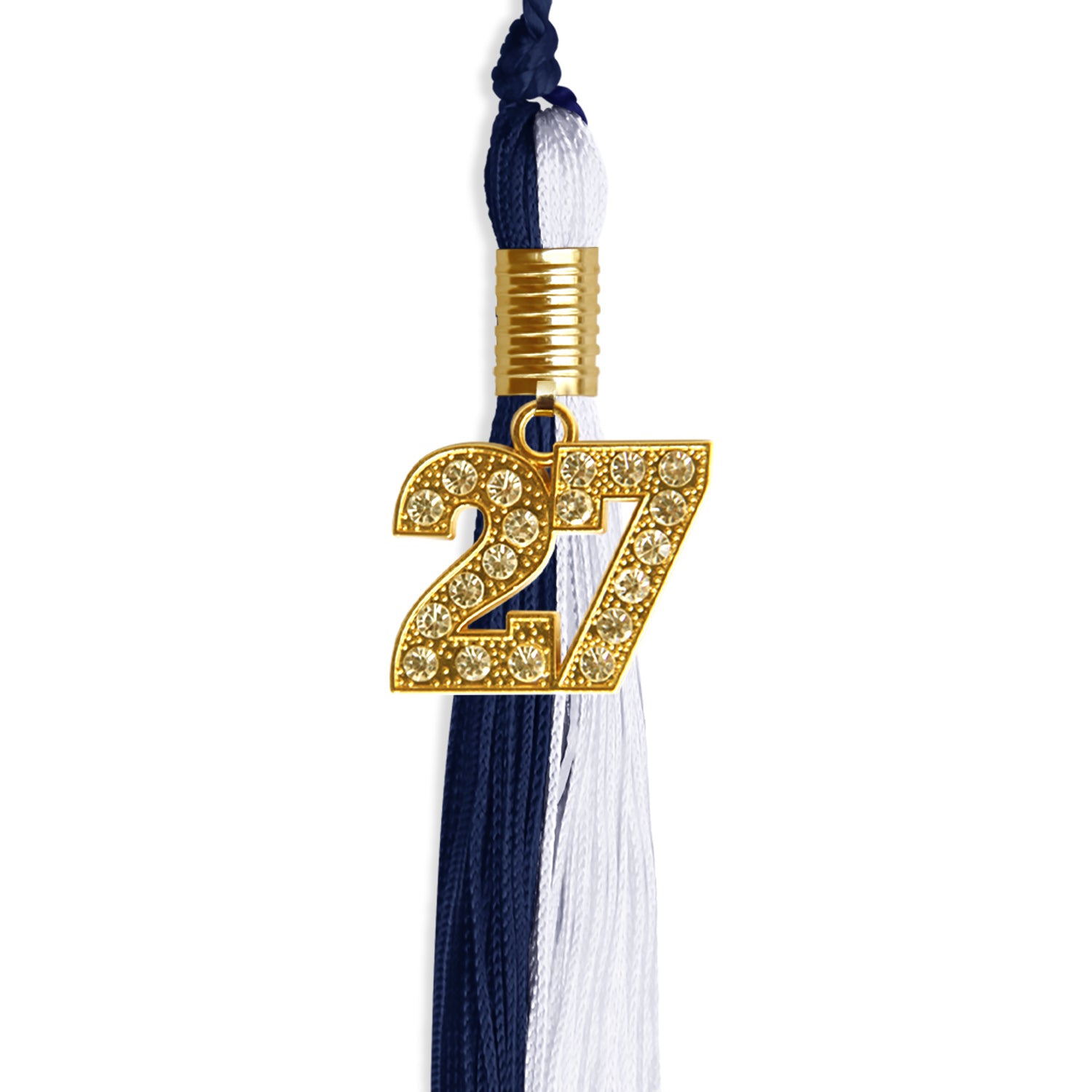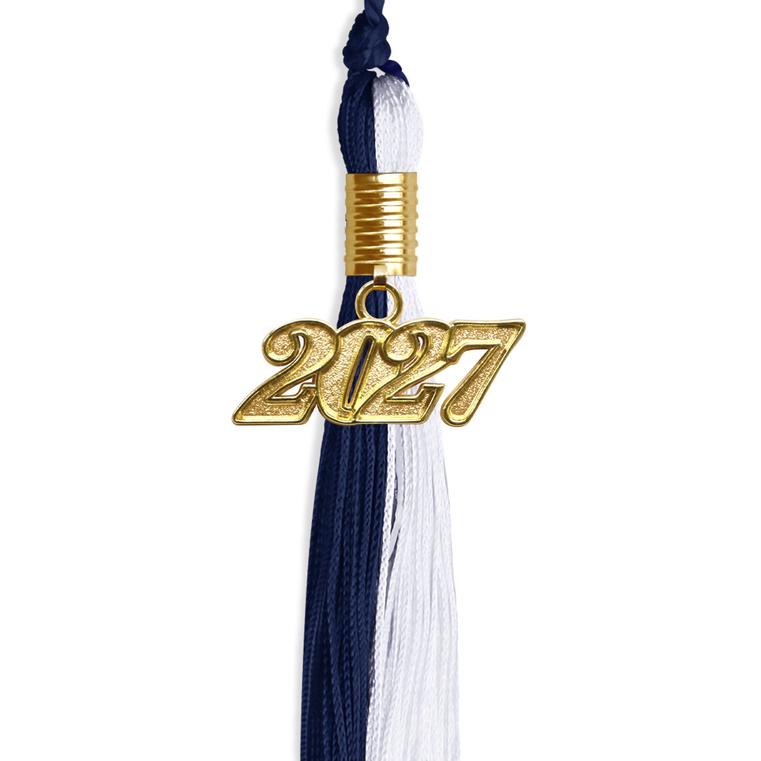 Double Color Tassel with Gold Date Drop (Navy Blue/White)