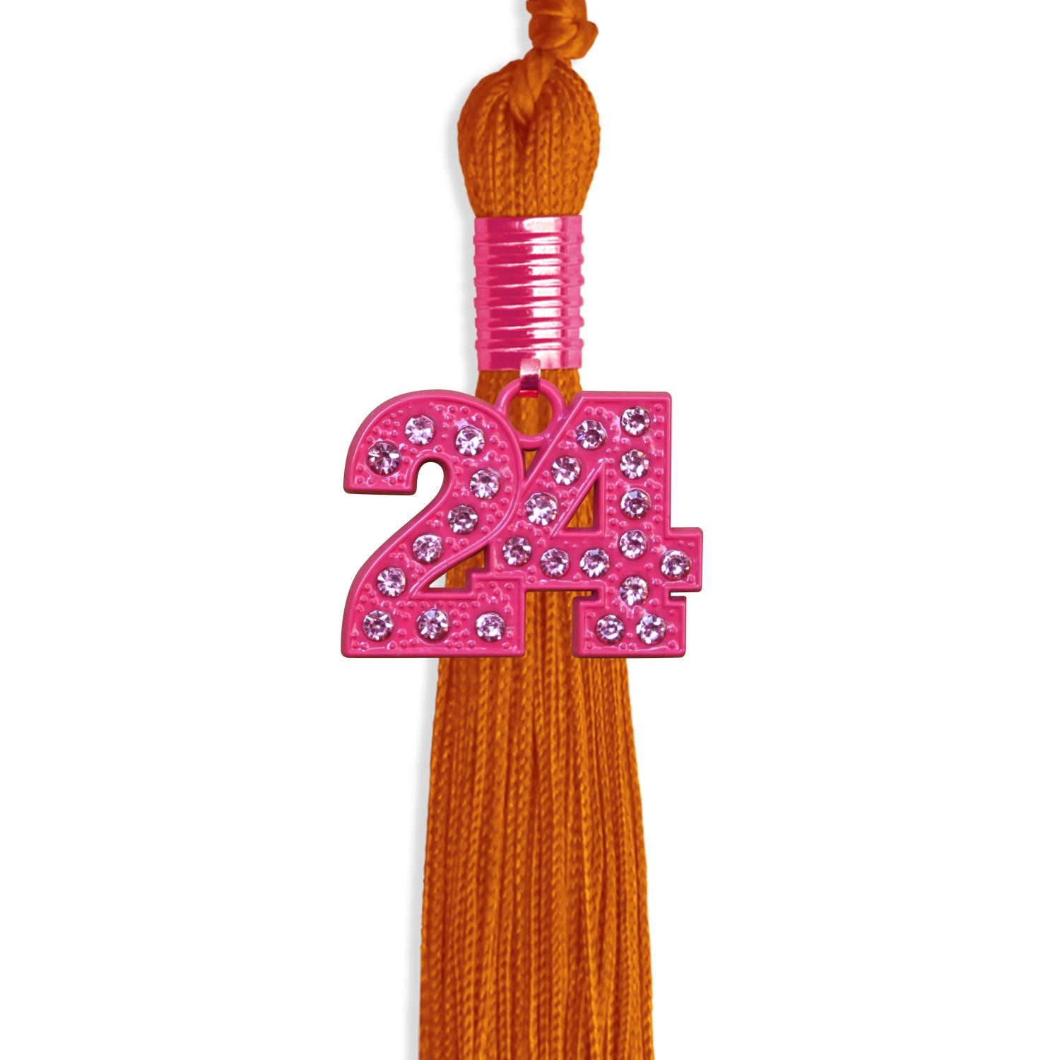 Celebrate your graduation in style with this Single Color Tassel with Pink Blink Charm. Perfect for those who want to add a bit of sparkle and elegance to their ceremony, this tassel combines a rich pink color with a stunning pink bling charm that catches the light beautifully. The durable, high-quality threads ensure a long-lasting, vibrant appearance. Measuring 9 inches in length with a 6 1/2" hang loop, it offers a perfect fit and easy attachment to your cap. Whether you're graduating from high school or college, this tassel is sure to be a memorable accessory that enhances your special day and makes for perfect photo opportunities.