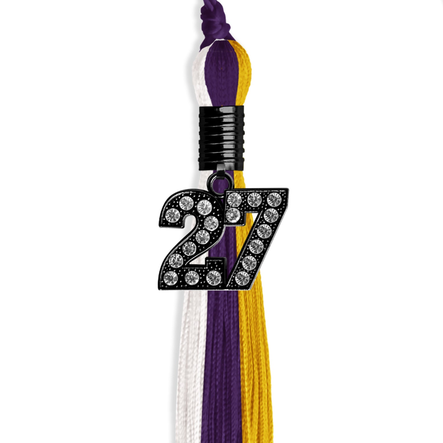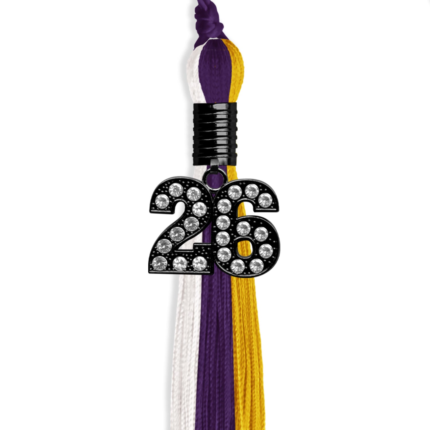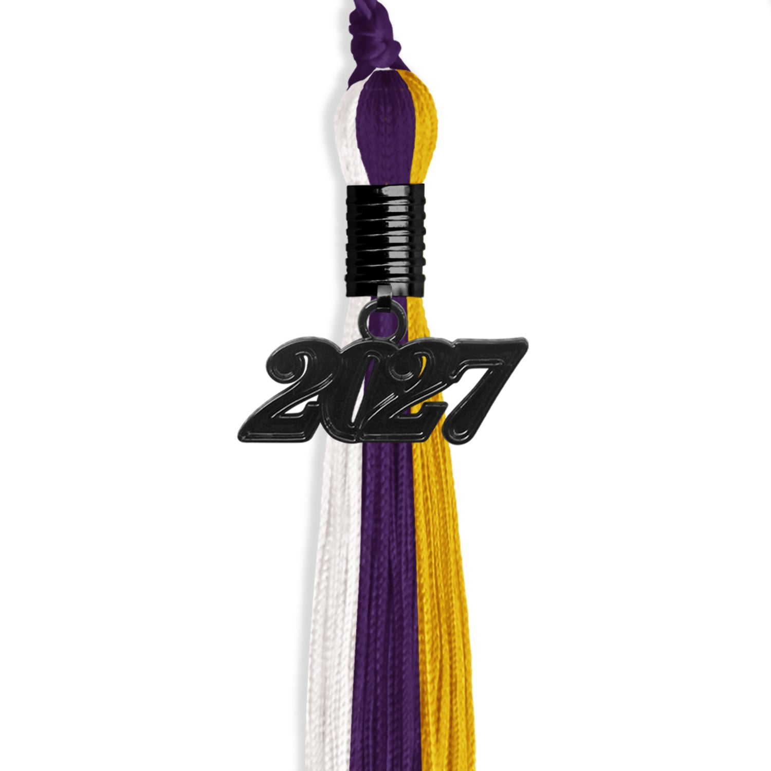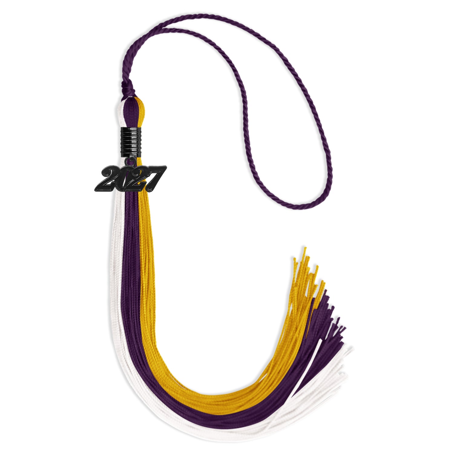 Purple/Gold/White Graduation Tassel with Black Date Drop